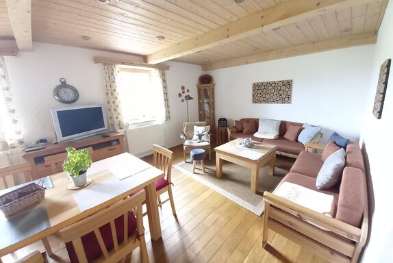 Unsere Ferienwohnung Sonnenblume im Obergeschoss ist ca. 80 qm groß und bietet