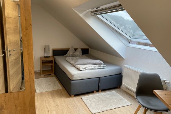 Das in 2020 renovierte Einzelzimmer ist mit einem französischem Boxspring mit Komfortmatratze, Kabel TV, WLAN, Safe und komplett mit Fußbodenheizung ausgestattet. Das moderne Tageslichtbad verfügt über eine begehbare Dusche und ist hochwertig ausgestattet.