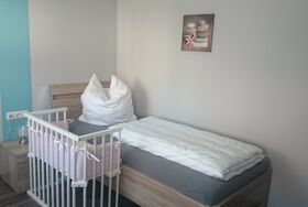 Babybett/Zustellbett sind auf Anfrage vor Ort verfügbar.