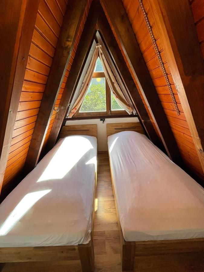 4 Einzelbetten 200 x 90 cm und Bettlicht, großer und kleiner Kleiderschrank im Vorzimmer, Heizung (im Winter separates heizen möglich), Insektenschutz