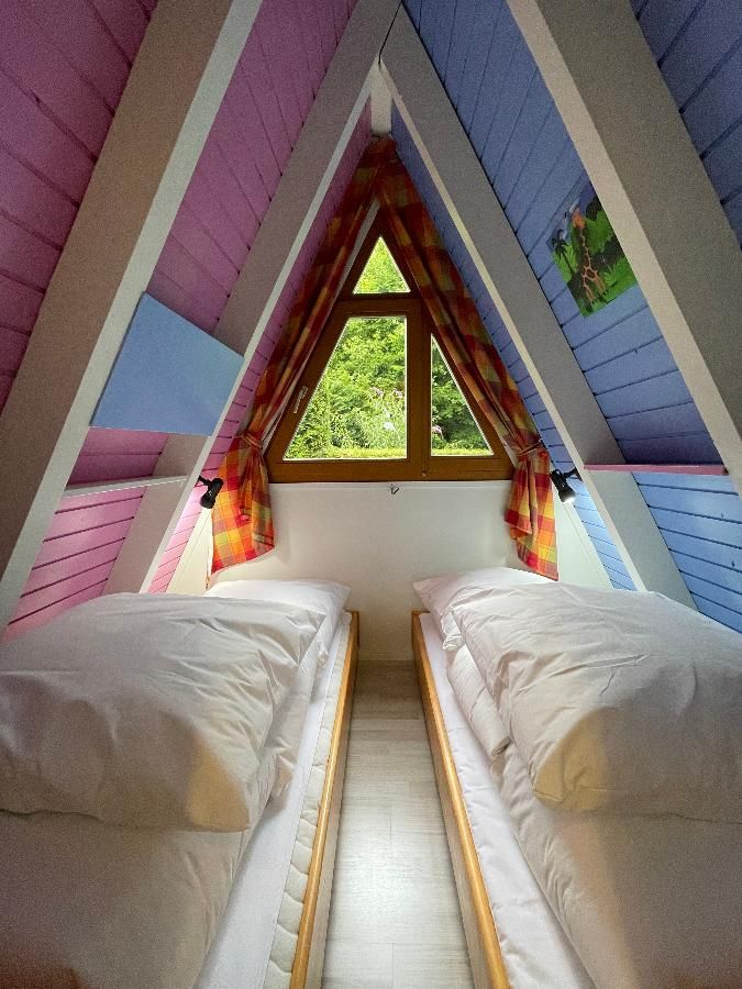 Erholen Sie sich in unserem gemütlichen Nur-Dach-Haus inmitten einer reizvollen Landschaft, mit herrlichem Ausblick, am Waldesrand und doch sehr zentral gelegen. Das Haus bietet auf 53 Quadratmetern alles, was man für einen erholsamen Urlaub braucht: einen gemütlichen Wohn- und Essbereich mit Küchenzeile und einem Bad im Erdgeschoss, sowie bis zu vier Schlafplätze unter dem Dach.