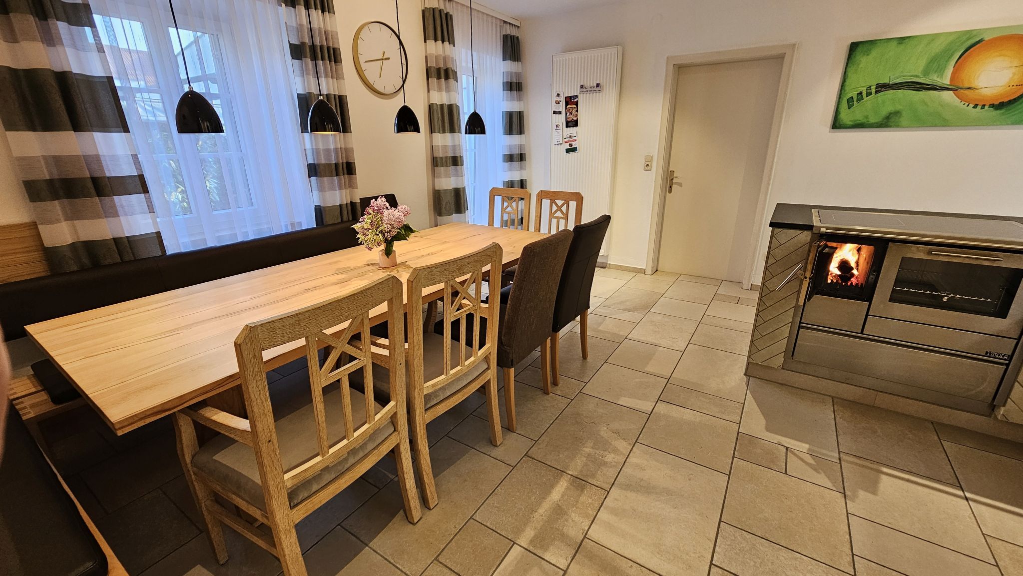 Wenn Sie gerne kochen, wird dies in unserer komplett ausgestatteten Küche zum Kinderspiel. Vom Küchenholzofen über Induktionskochfeld Geschirrspülmaschine, Mikrowelle bis zur Kaffeemaschine ist alles vorhanden, um im Essbereich der Küche oder im Wohnzimmer ein zauberhaftes Frühstück, Mittag- oder Abendessen zu servieren. Weitere Zimmerausstattung: 15m² großes Bad mit Dusche, Badewanne und Fenster, zusätzliche Toilette, 1 x Doppelbettzimmer (erweiterbar) im Erdgeschoß und 4 Doppelzimmer (erweiterbar) im Obergeschoß mit neuem Bad, 40 qm Terrasse direkt vor dem Haus und nochmal eine 40qm Terrasse an der Donau.
