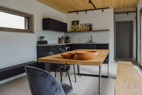 Das moderne Ferienhaus bietet auf 76 Quadratmetern Platz für bis zu 2 Personen. Die Wohnküche mit Küchenzeile ist mit Backofen, Kaffeemaschine, Kühlschrank, Geschirrspülmaschine und Toaster voll ausgestattet. Der großzügige und offene Wohn- und Essbereich ist mit einer Sitzecke und einem Sofa sowie TV und Radio ausgestattet. Das Schlafzimmer ist mit einem gemütlichen Doppelbett ausgestattet. Sie haben Zugang zu Ihrer eigenen Terrasse. Das helle Badezimmer verfügt über Dusche, WC, Waschbecken und Fön. Das Chalet wird mit einer Hackschnitzelheizung geheizt.