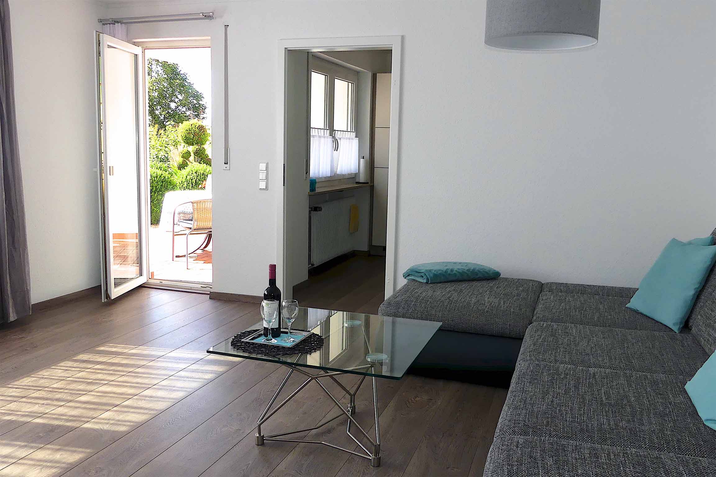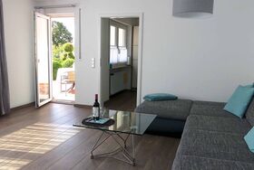 Die große, helle und moderne Ferienwohnung in sonnenverwöhnter Südlage mit Terrasse, gepflegtem Rasen und Gartenanlage bietet mit 80 qm für 1-3 Personen reichlich Platz. Selbst wenn das Wetter einmal nicht mitspielen sollte (wir sind eine niederschlagsarme Region), sorgen die großen Fenster für viel Licht in den Räumen. Die Ferienwohnung hat einen separaten Eingang. Alle Böden im Holzdesign, Vinyl bzw. Fliesen (Allergiker-freundlich). Haustiere nicht möglich. In der gesamten Wohnung WLAN verfügbar.