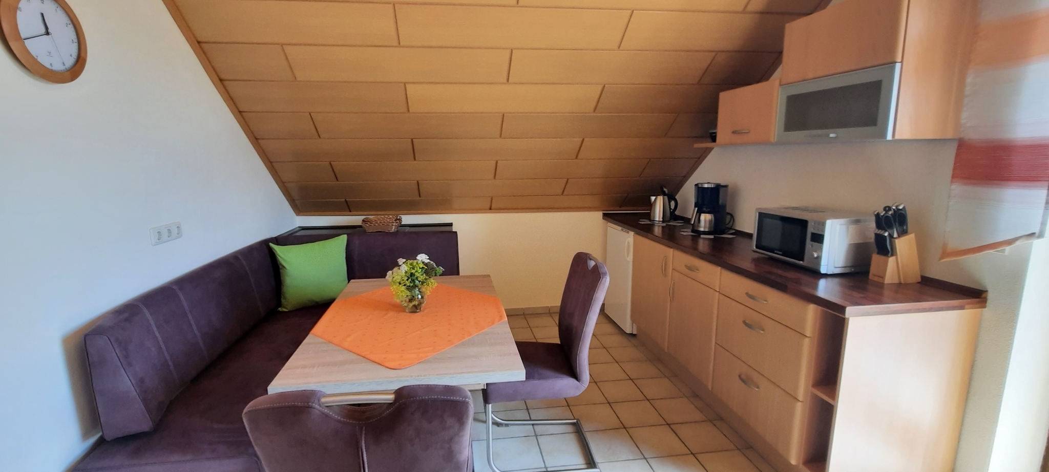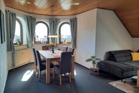 Wir bieten Ihnen eine ruhige, komfortable und gemütliche Nichtraucherferienwohnung (ca. 90 qm) für 2 – 4 Personen mit überdachtem Balkon zur Südseite in unmittelbarer Waldrandlage. Parkplätze befinden sich direkt vor dem Haus.