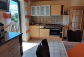 Vollständig eingerichtete Küche mit Geschirr und Besteck, Herd (Ceranfeld) und Backofen, Spülmaschine, Microwelle, Gefrierschrank, Kühlschrank, Kaffeemaschine, Toaster, Wasserkocher, Eierkocher, elektrischer Handmixer.