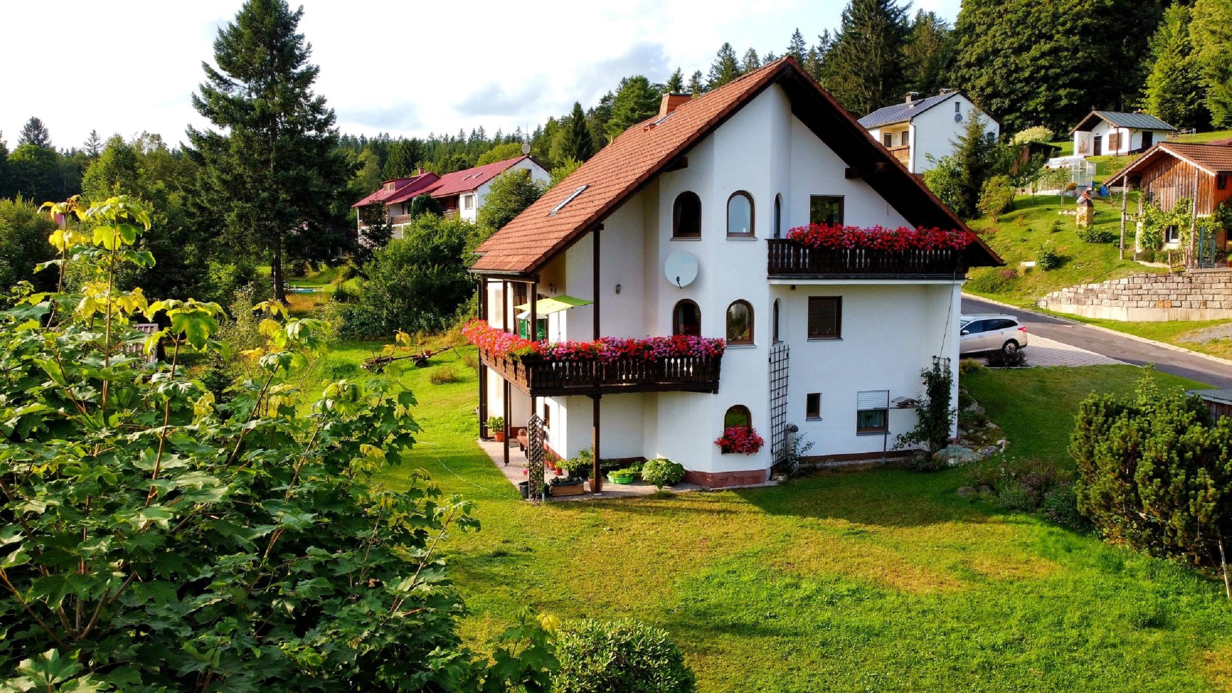 mit überdachtem Balkon zur Südseite in unmittelbarer Waldrandlage.