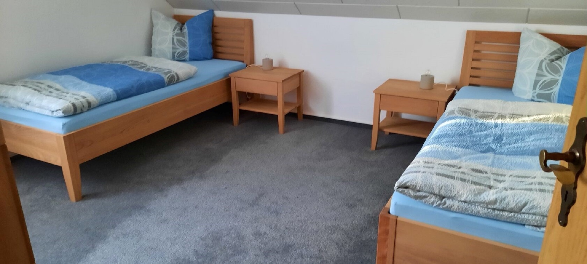 1 Schlafzimmer mit Doppelbett, 1 Schlafzimmer mit 2 Einzelbetten (kann bei Bedarf zum Doppelbett umfunktioniert werden).