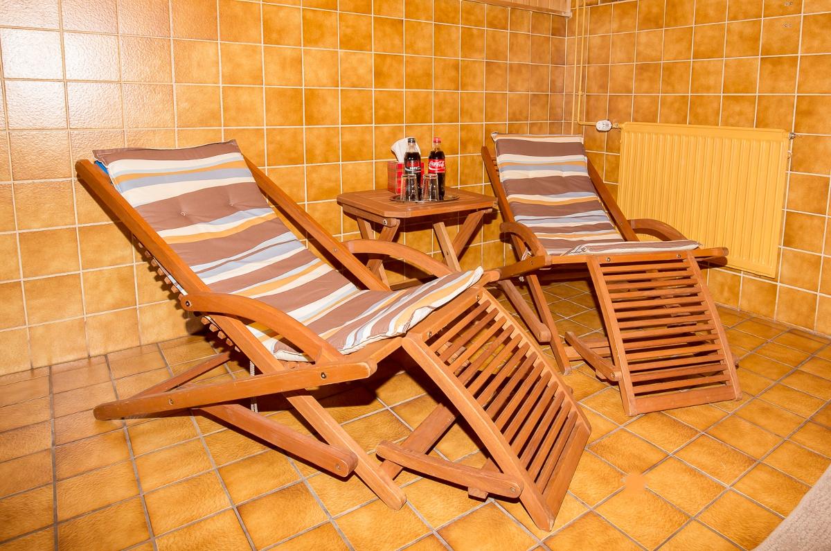 kleine Sauna und ein Gastraum als Treffpunkt und Aufenthaltsraum mit