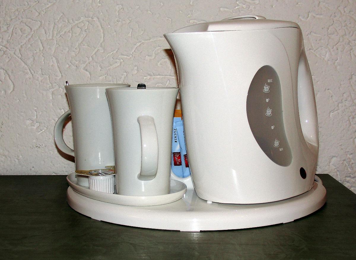 Tee-/Kaffeestation und einen LCD-Farbfernseher mit Satellitenempfang und