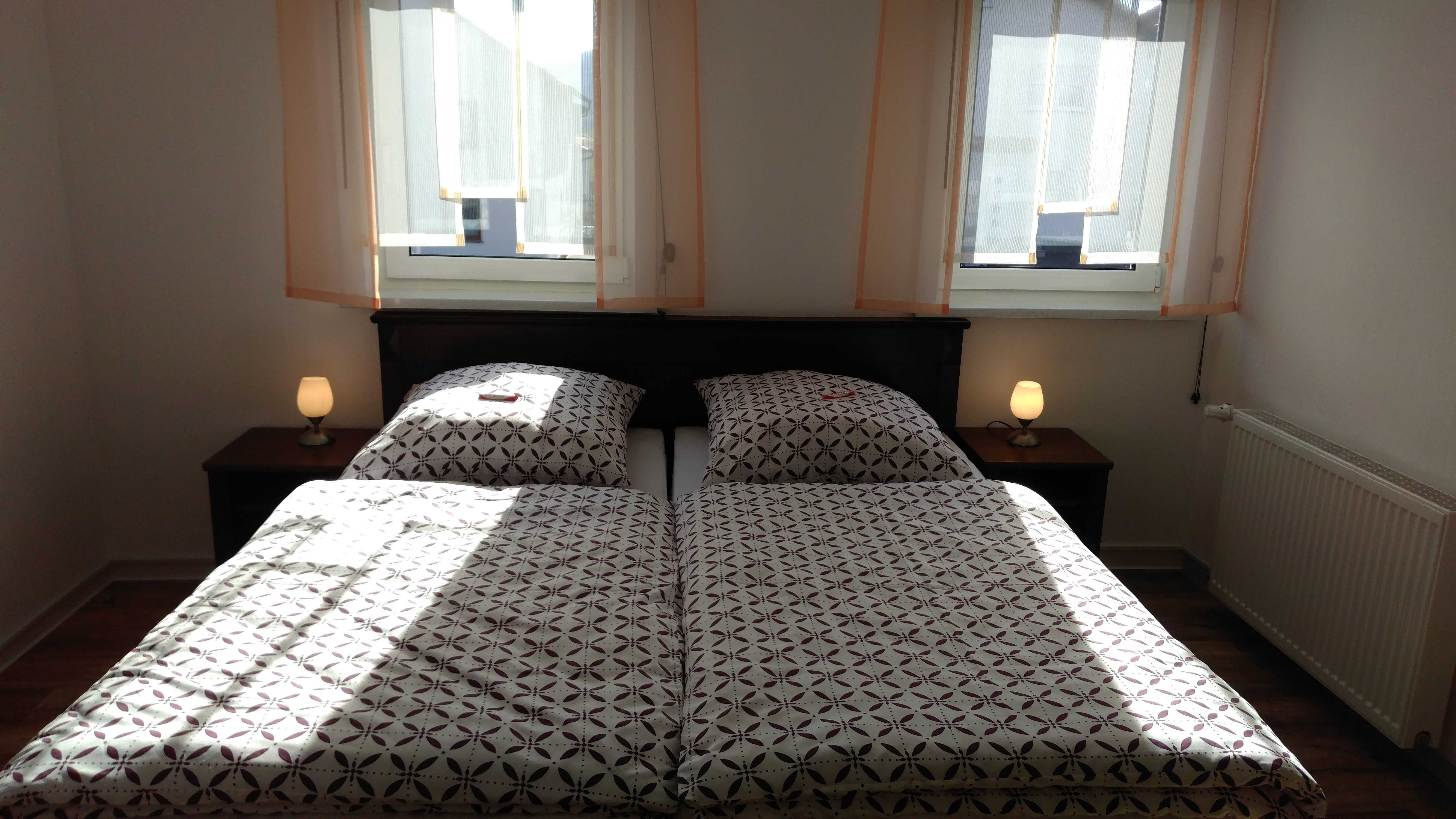 Im Obergeschoss befinden sich 2 Schlafzimmer mit je einem Doppelbett sowie 3 Schlafzimmer mit je einem Einzelbett. Zwei dieser Zimmer sind nur über das Doppelzimmer erreichbar. Die Doppelbetten sind auch einzeln stellbar. Im Erdgeschoss ist ein Schlafsofa vorhanden. Ein Kinderbett sowie ein Hochstuhl sind auf Anfrage verfügbar.