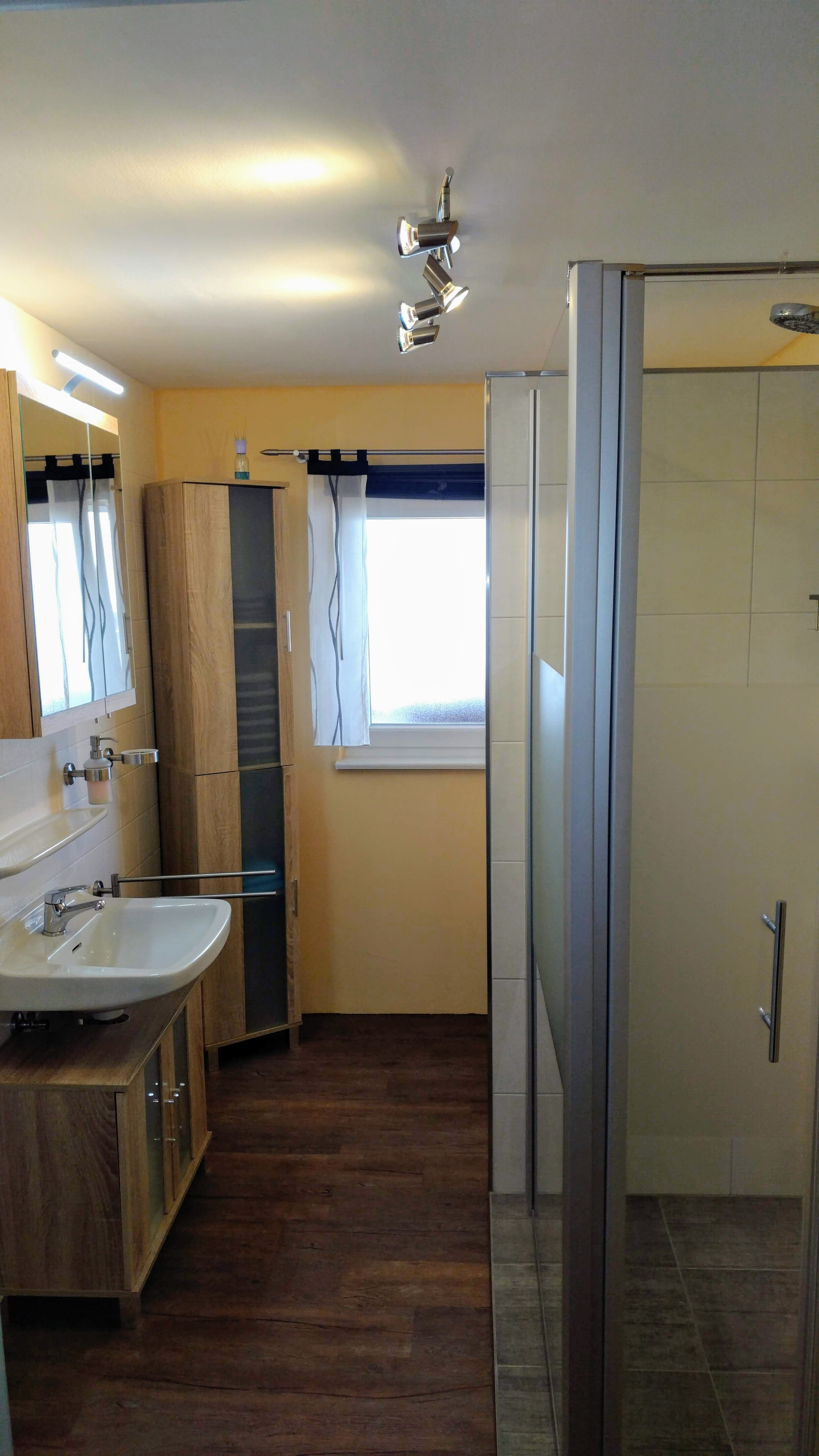 Ebenfalls ist ein Bad mit ebenerdiger Dusche und separatem abgetrenntem Urinal und extra Waschraum mit Waschmaschine vorhanden.