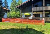 Für Hundebesitzer stehen Fressnäpfe und ein zusätzlicher Zaun zur Einfriedung des Gartens bereit. Gassigehen ab Haus.
