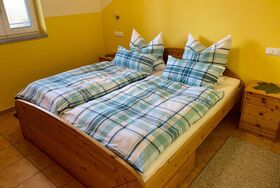Sie finden einen Schlafraum mit Doppelbett inkl. Bettwäsche,