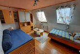 Das Wohnzimmer verfügt über ein Schlafsofa (1,80 m x 1,60 m) für 2 Personen sowie eine Flachbild Sat-TV. Brettspiele stehen zur Verfügung. Für Ihre Fitness bieten wir Ihnen einen Crosstrainer und ein Ergometer kostenfrei an.
