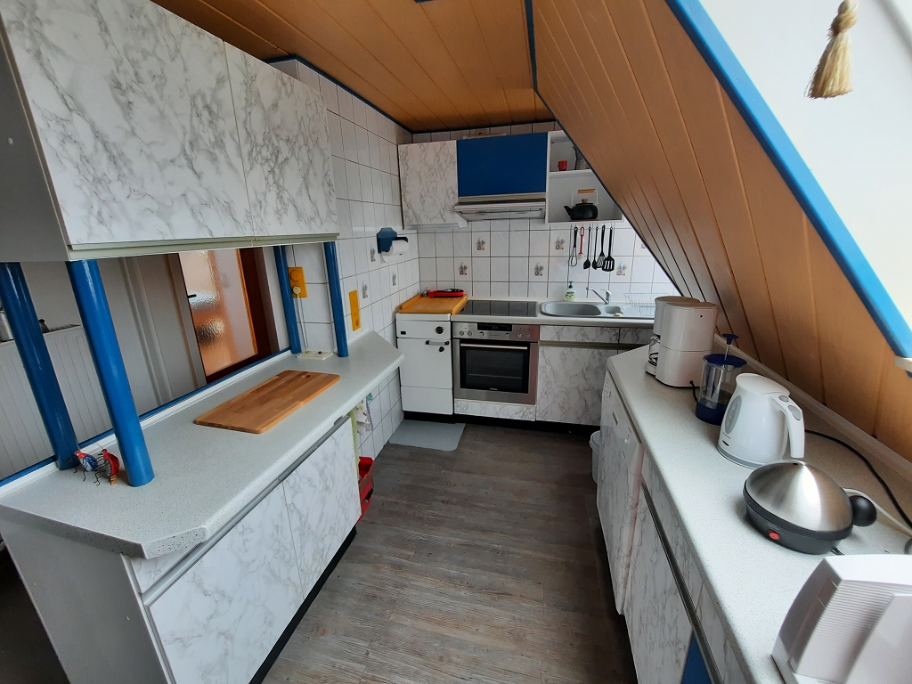 Die Küche ist mit Backofen, E-Herd, Kühlschrank, Mikrowelle, Toaster, Kaffeemaschine und Wasserkocher voll ausgestattet. Geschirrtücher und alles Nötige für die genussvolle Zubereitung Ihrer Speisen sind vorhanden.