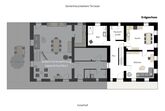 Bad mit begehbarer Dusche, WC und Waschtisch, Fußbodenheizung