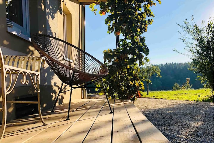 Rabenbrunn ist ein kleiner idyllisch gelegener Bauernhof im schönen Niederbayern. Wir haben dieses Anwesen im Jahre 2018 erworben, und in ein liebevoll gestaltetes Ferienhaus umgebaut. Wir, das sind Heidi, Christian, Markus und Johannes Schwarz aus Arnstorf. Mit unserem Malerbetrieb und einigen örtlichen Handwerkern haben wir dem Wohnhaus wieder neues Leben eingehaucht und an unzähligen Wochenenden selbst Hand angelegt. Nun ist Rabenbrunn der ideale Ort um mit der Familie oder Freunden ein paar entspannte Tage zu verbringen. Das Anwesen liegt auf einem kleinen Hügel, und man kann völlig ungestört die Ruhe und die umliegende Natur genießen. Nahe dem Haus gibt es einen Weiher (nicht zum Baden geeignet). Ein paar Schritte nur um einen kleinen Waldspaziergang zu machen, oder über eine Blumenwiese zu schlendern. Entspannen, abschalten, Energie tanken – dafür steht Rabenbrunn. Im Interieur des Hauses haben wir jedes Zimmer mit Farben und Tapeten liebevoll gestaltet und eingerichtet, sodass man sich wie zuhause fühlen kann. Im selben Haus befindet sich noch eine weitere Ferienwohnung für 2-3 Personen mit separaten Eingang die zusätzlich gebucht werden kann.