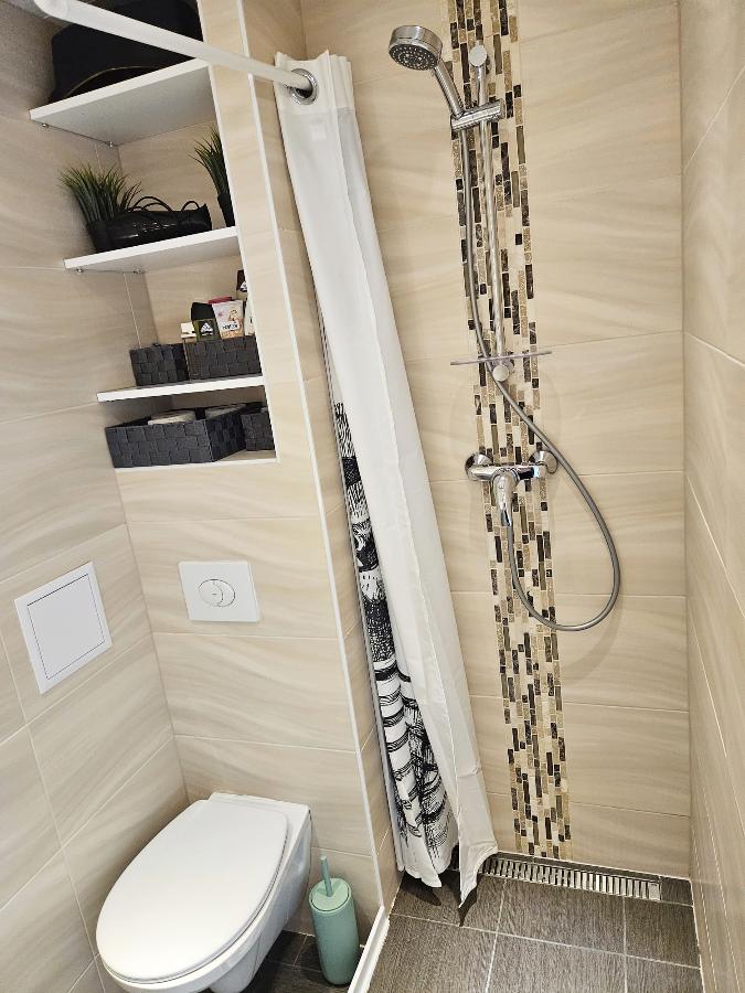 Das kleine aber feine Duschbad ist mit Föhn, Duschgel, Shampoo und anderen Hygieneartikeln ausgestattet.