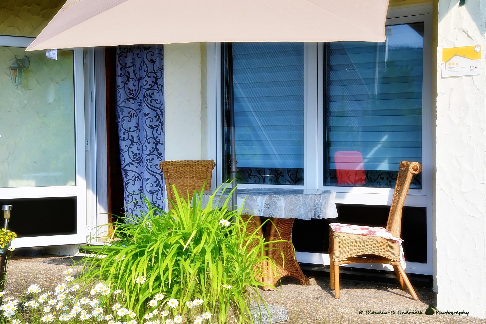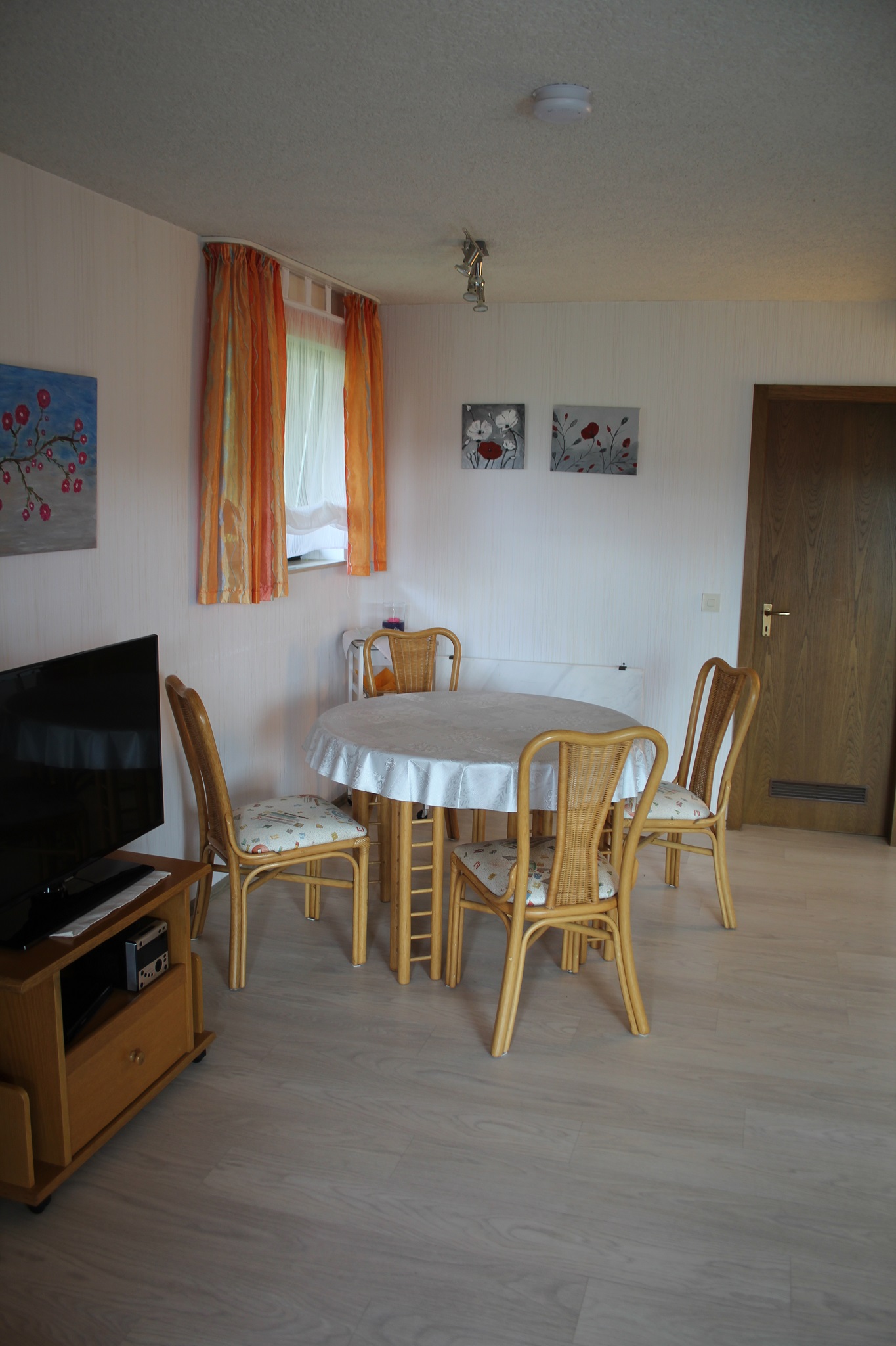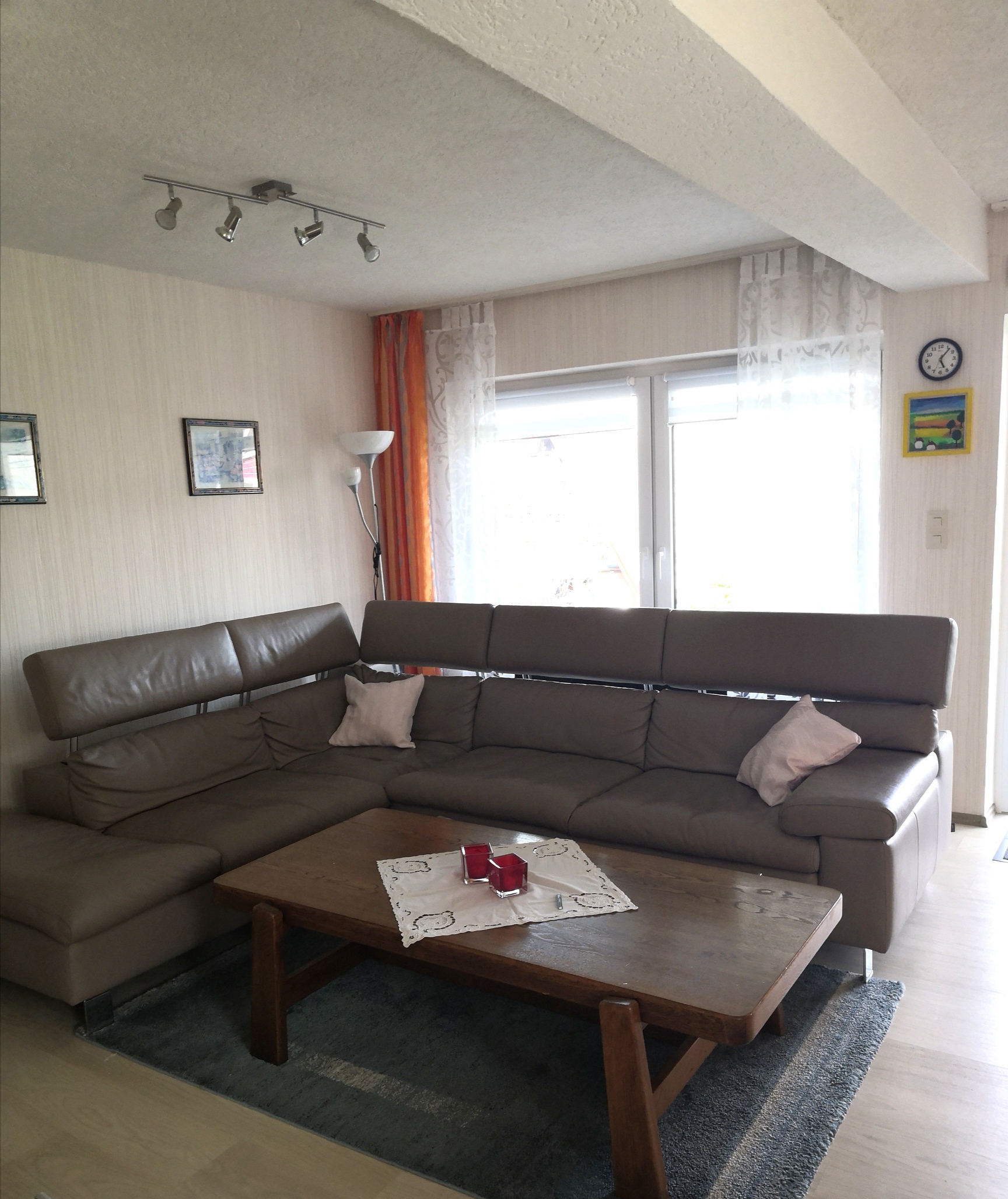 Unsere schöne, helle Nichraucher-Souterrain-Ferienwohnung hat ca. 55 qm und bietet Platz für bis zu 4 Personen. Die Wohnung befindet sich in ruhiger Südhanglage mit eigenem Eingang. Das Schlafzimmer verfügt über ein Boxspringbett (1,60x2,00m) und bietet direkten Zugang zur Dusche und zum WC. Im Wohnzimmer befindet sich eine grossräumige Eck-Ledercouch mit einem Hocker, ein Sat-Flachbild-TV, ein DVD Player und ein Radio mit CD-Player. 2 Gästeklappbetten können zudem im Wohnzimmer aufgestellt und genutzt werden (auch alternativ für Schnarcher). Die moderne Küchenzeile ist komplett ausgestattet mit Geschirrspüler, Mikrowelle, Backofen und Kühlschrank mit Gefrierfach. Außerdem gibt es eine Kaffeemaschine und (Senseo), einen Toaster, einen Sodastreamer sowie imeinen Wasser- und Eierkocher. Der großzügige Essbereich ist mit Rattanmöbeln ausgestattet.