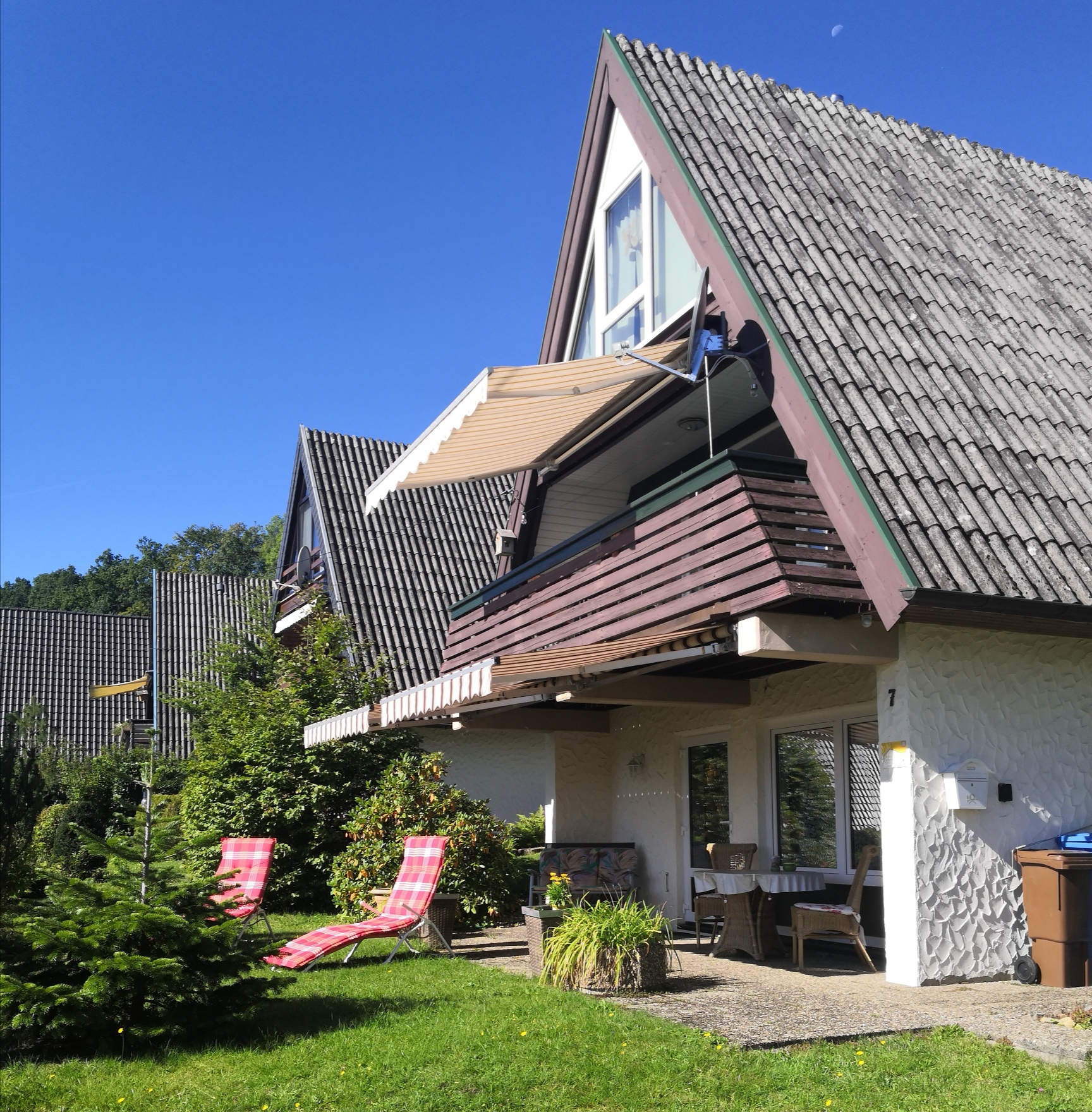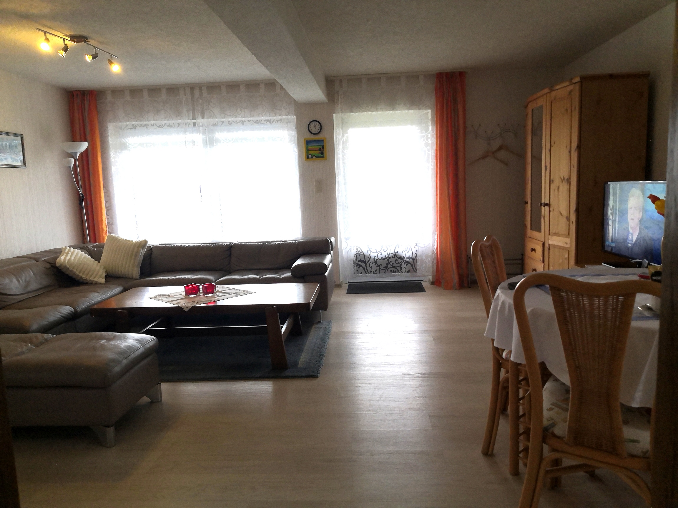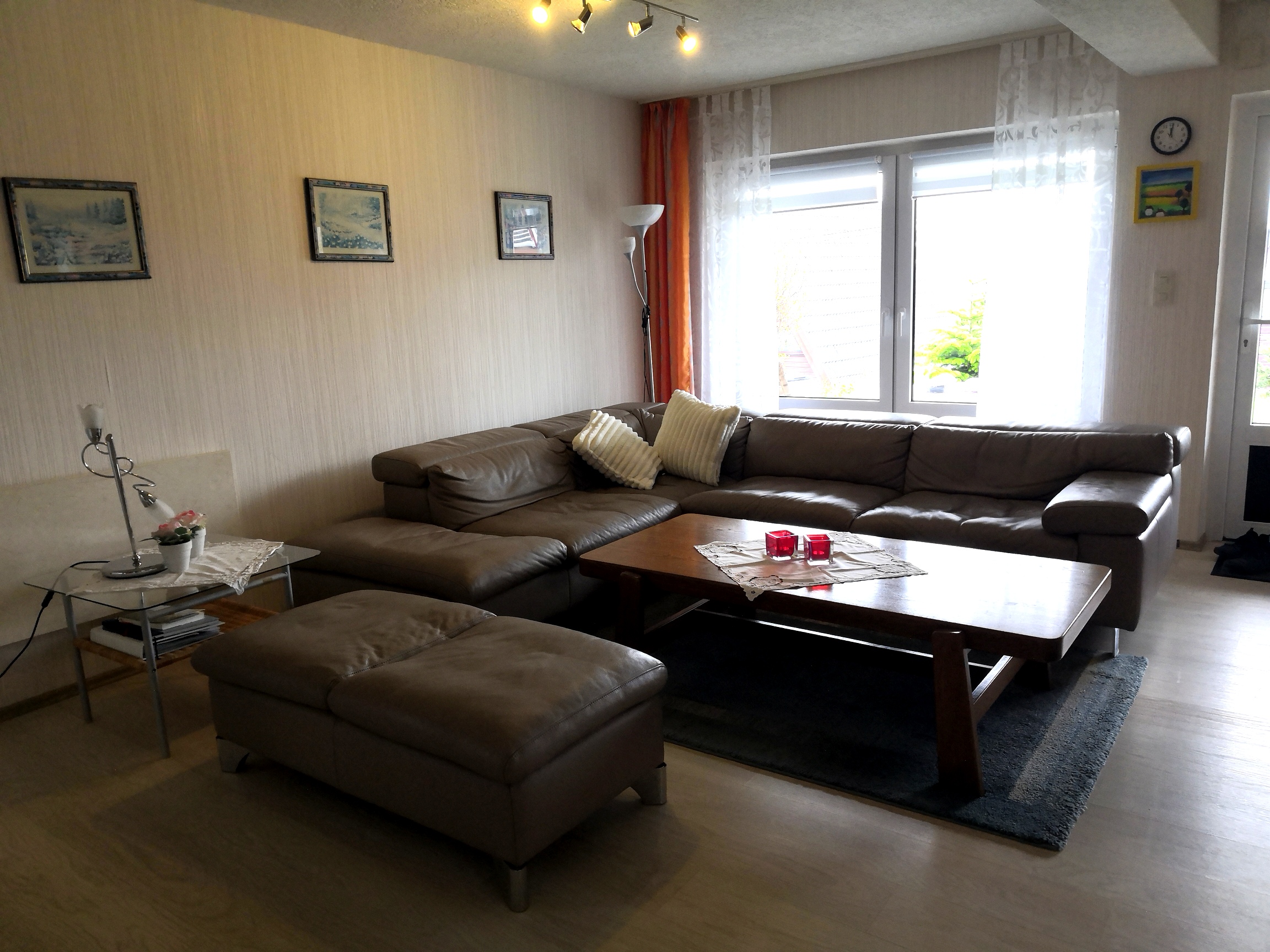 Unsere schöne, helle Nichraucher-Souterrain-Ferienwohnung hat ca. 55 qm und bietet Platz für bis zu 4 Personen. Die Wohnung befindet sich in ruhiger Südhanglage mit eigenem Eingang. Das Schlafzimmer verfügt über ein Boxspringbett (1,60x2,00m) und bietet direkten Zugang zur Dusche und zum WC. Im Wohnzimmer befindet sich eine grossräumige Eck-Ledercouch mit einem Hocker, ein Sat-Flachbild-TV, ein DVD Player und ein Radio mit CD-Player. 2 Gästeklappbetten können zudem im Wohnzimmer aufgestellt und genutzt werden (auch alternativ für Schnarcher). Die moderne Küchenzeile ist komplett ausgestattet mit Geschirrspüler, Mikrowelle, Backofen und Kühlschrank mit Gefrierfach. Außerdem gibt es eine Kaffeemaschine und (Senseo), einen Toaster, einen Sodastreamer sowie imeinen Wasser- und Eierkocher. Der großzügige Essbereich ist mit Rattanmöbeln ausgestattet.