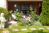 In unseren ca. 3000qm großen Garten mit Liegewiesen, Zierfischteichen (Biotope) und idyllischen Plätzen mit Grillmöglichkeit, können Sie die Seele baumeln lassen und den Alltag vergessen. Auch die Kleinsten werden sich bei uns sicherlich wohl fühlen: Im Spielgarten, können die Kinder nach Herzenslust sich austoben. Es steht ein Spielplatz mit Rutsche, Schaukel, Trampolin u.s.w zur Verfügung.