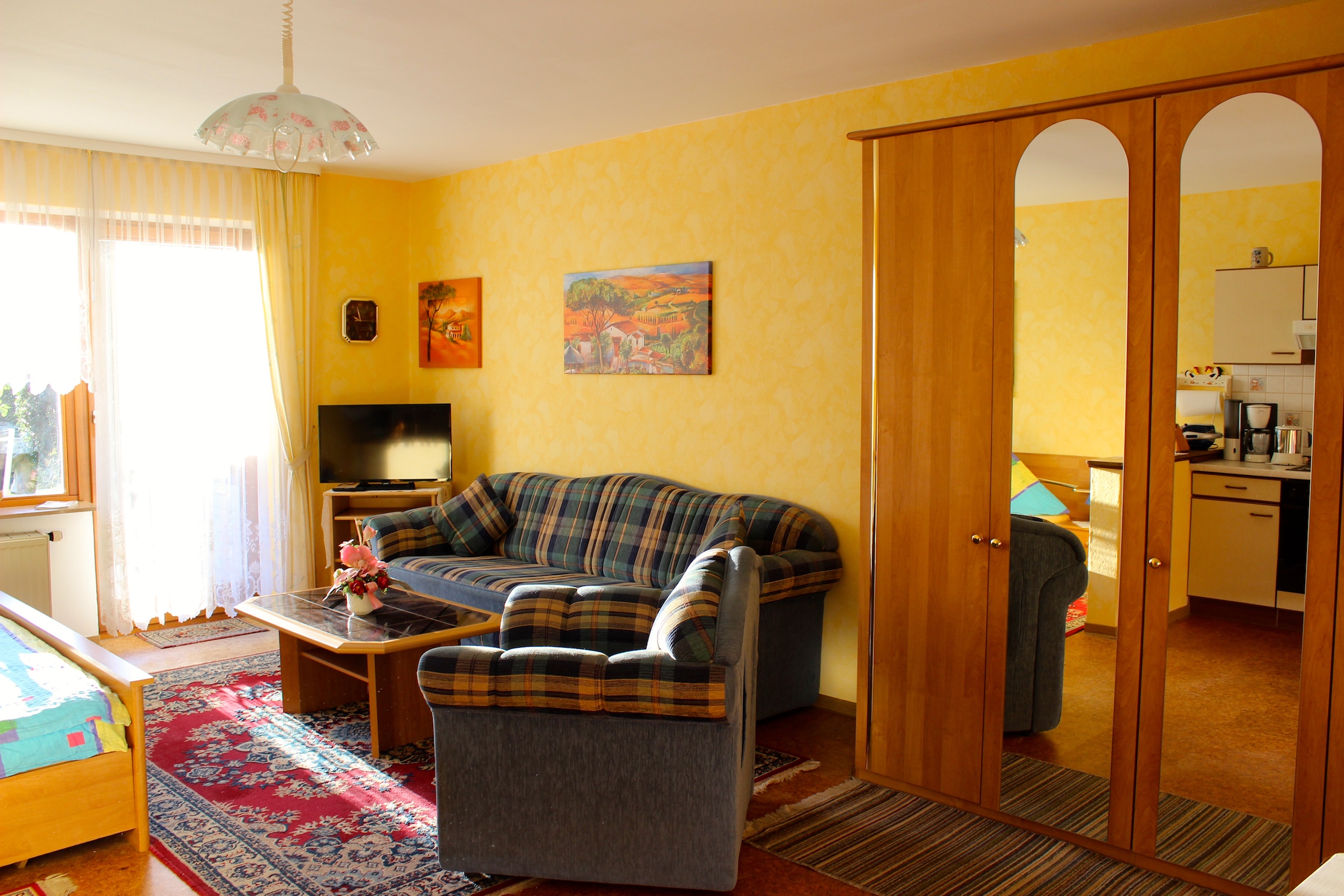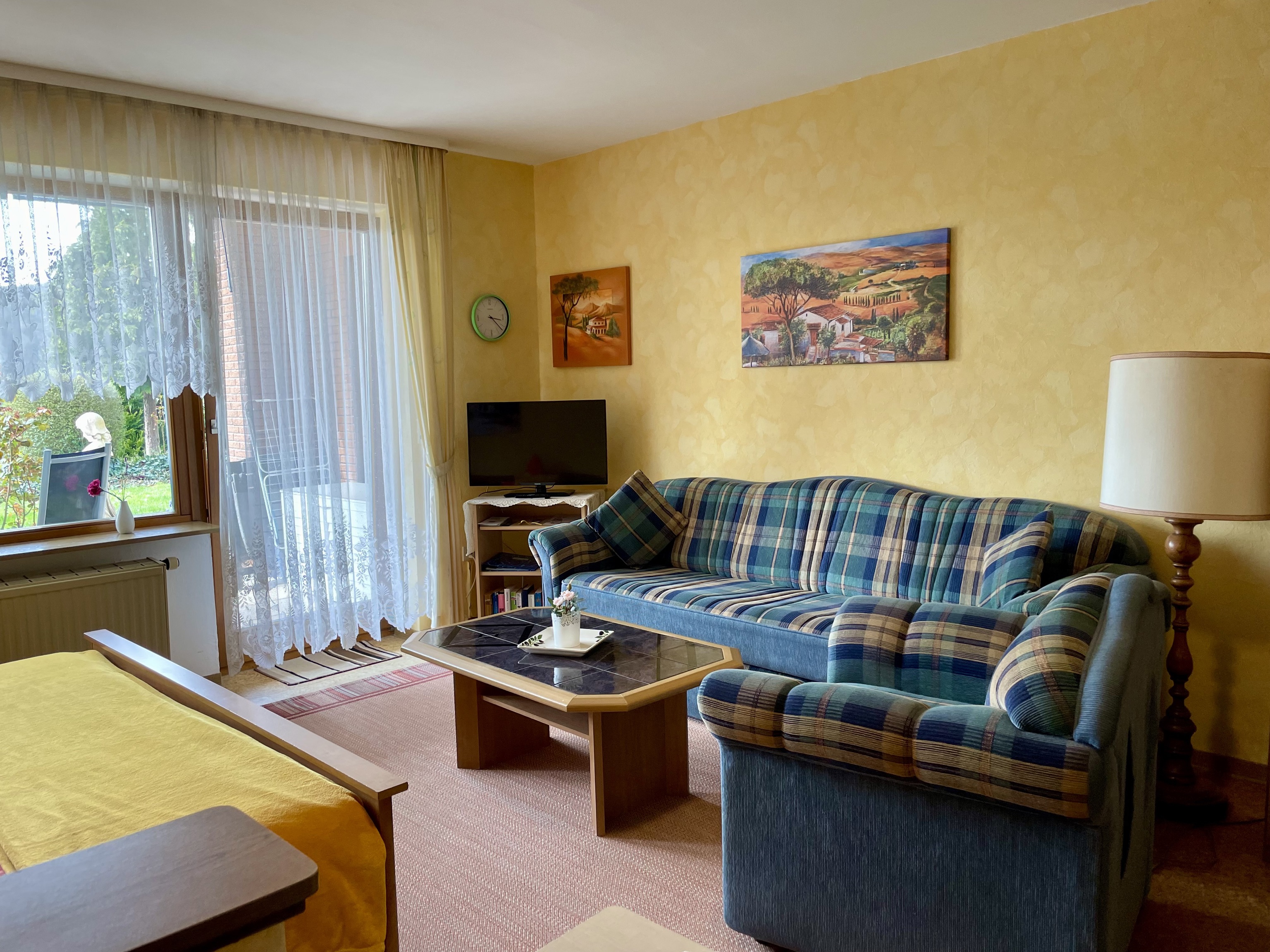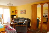 Erdgeschosswohnung - 35qm, Wohn- Schlafraum mit großen Doppelbett, verstellbaren Lattenrost, gute Qualitätsmatratzen, geräumigen Kleiderschrank,