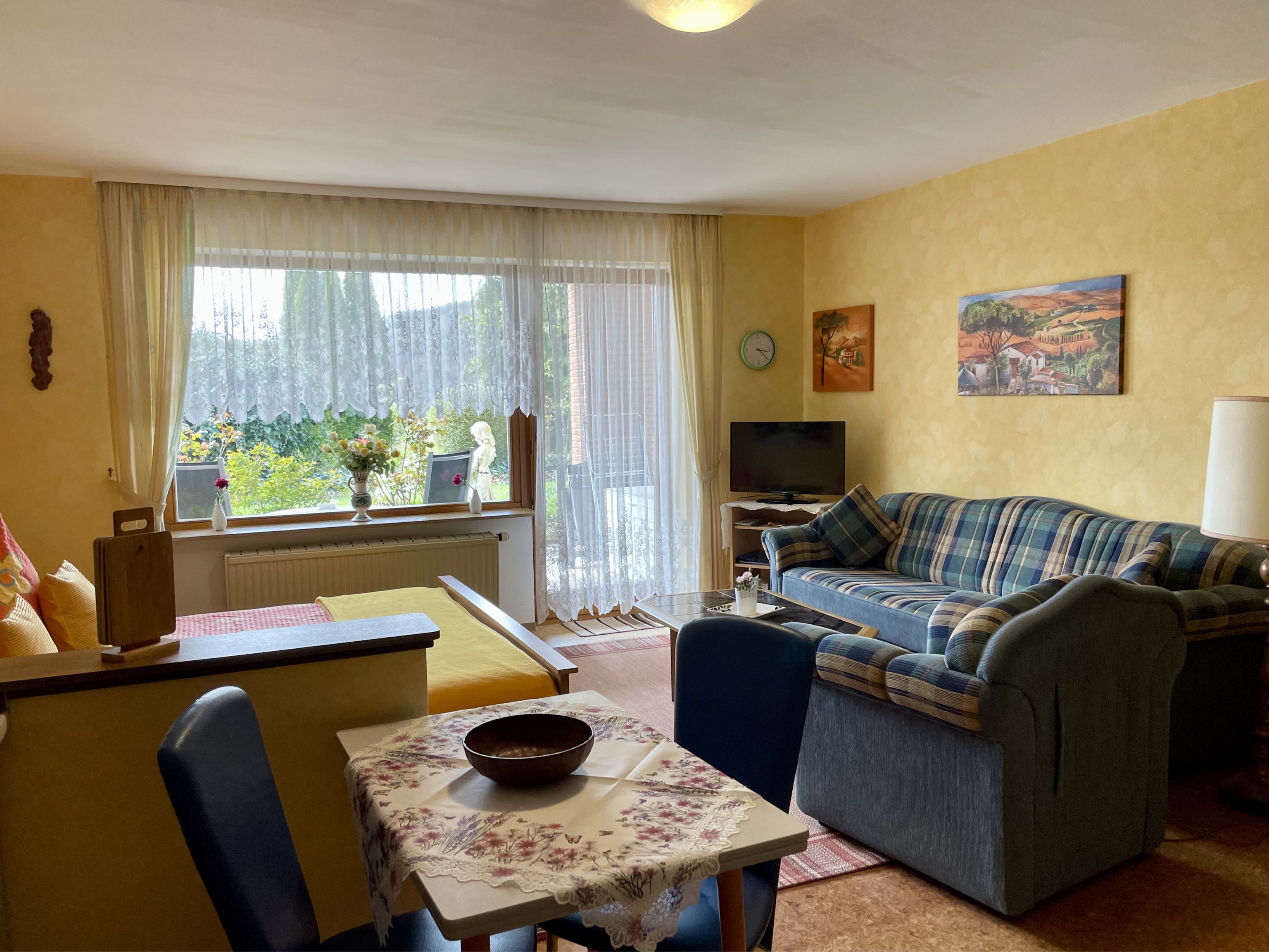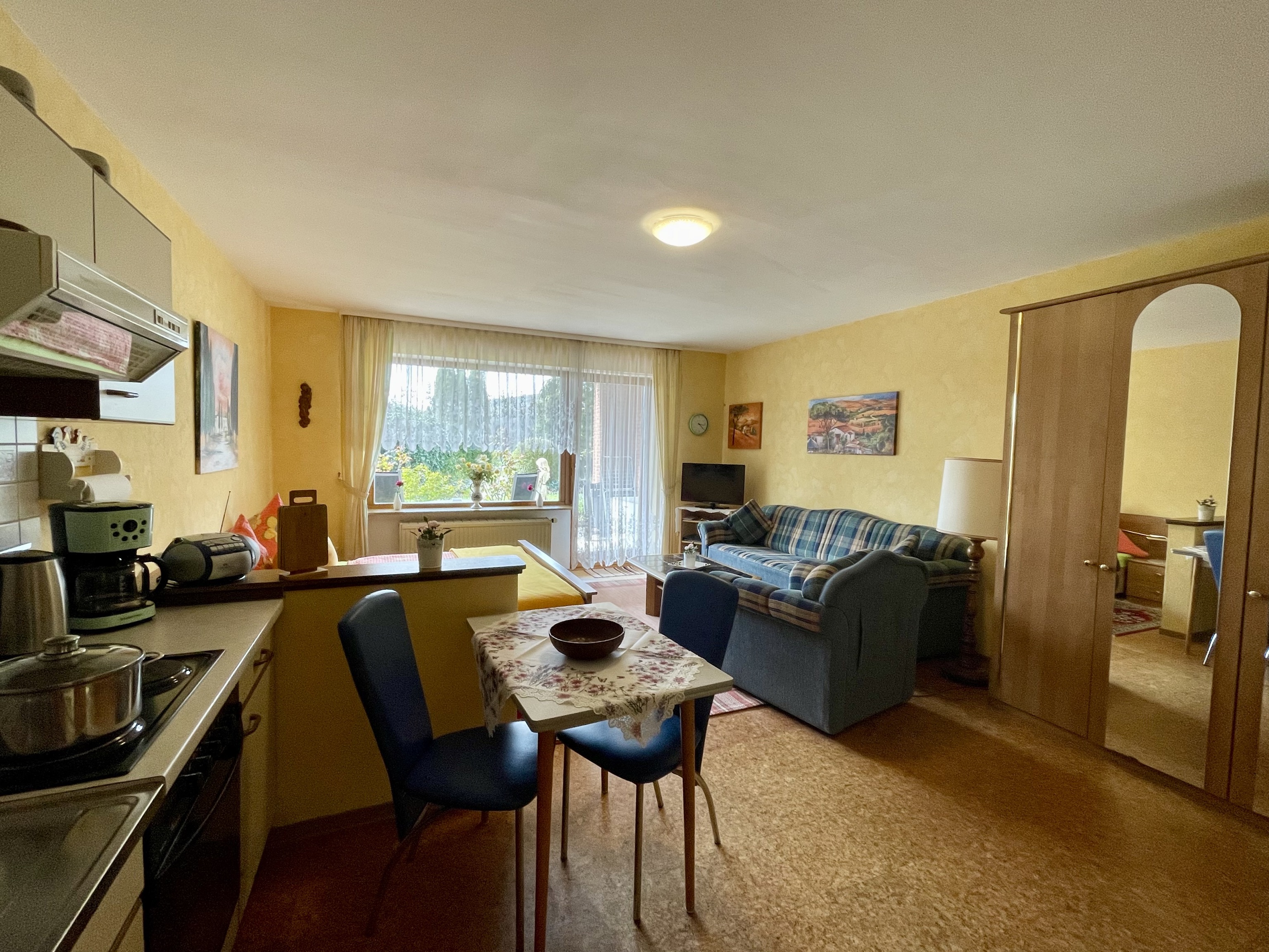 Couchgarnitur, Einbauküche mit Essecke, genügend Küchenutensilien, Backofen, Herd, Kühlschrank mit Eisfach, Flachbild-TV, Radio-CD-Player, DU/WC,