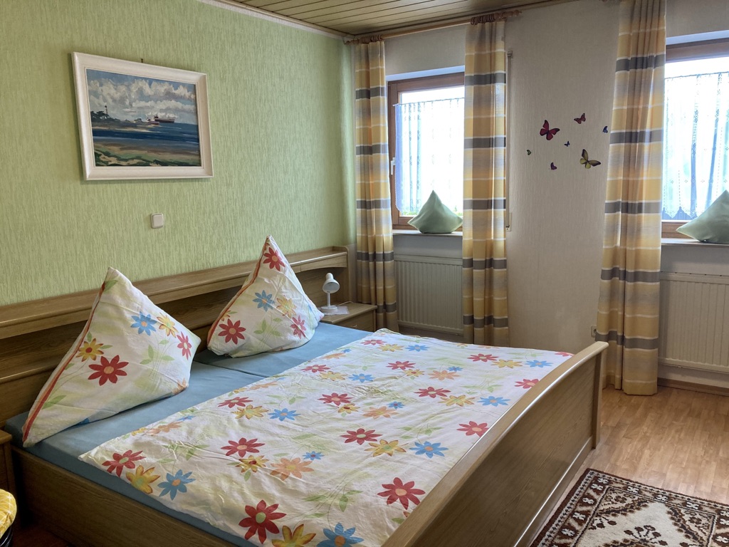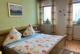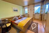 Schlafzimmer mit großen Doppelbett und geräumigen Kleiderschrank, verstellbarer Lattenrost, gute Qualitätsmatratzen, Kleiderständer, Sessel,