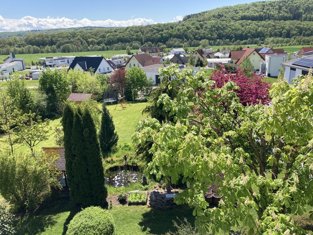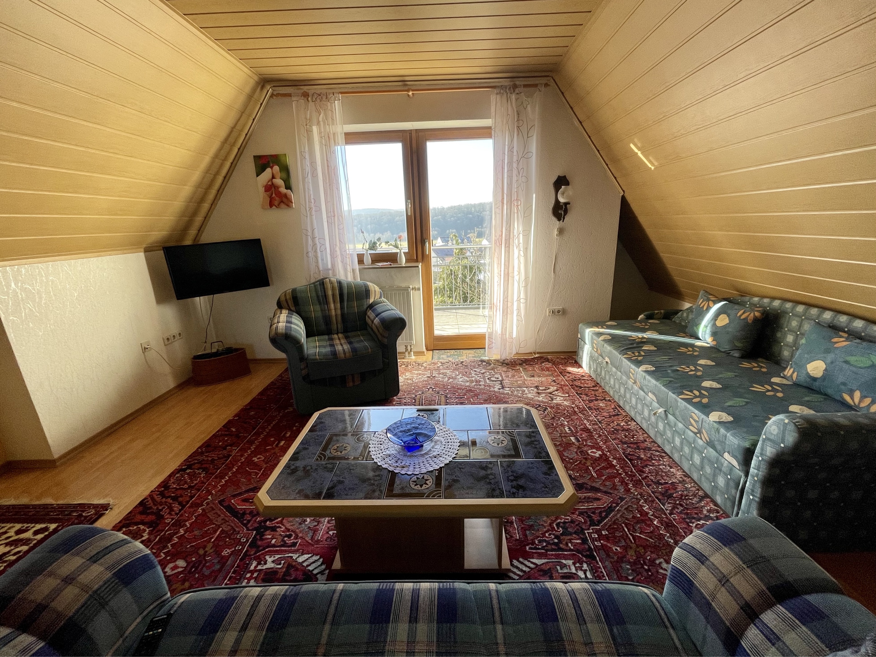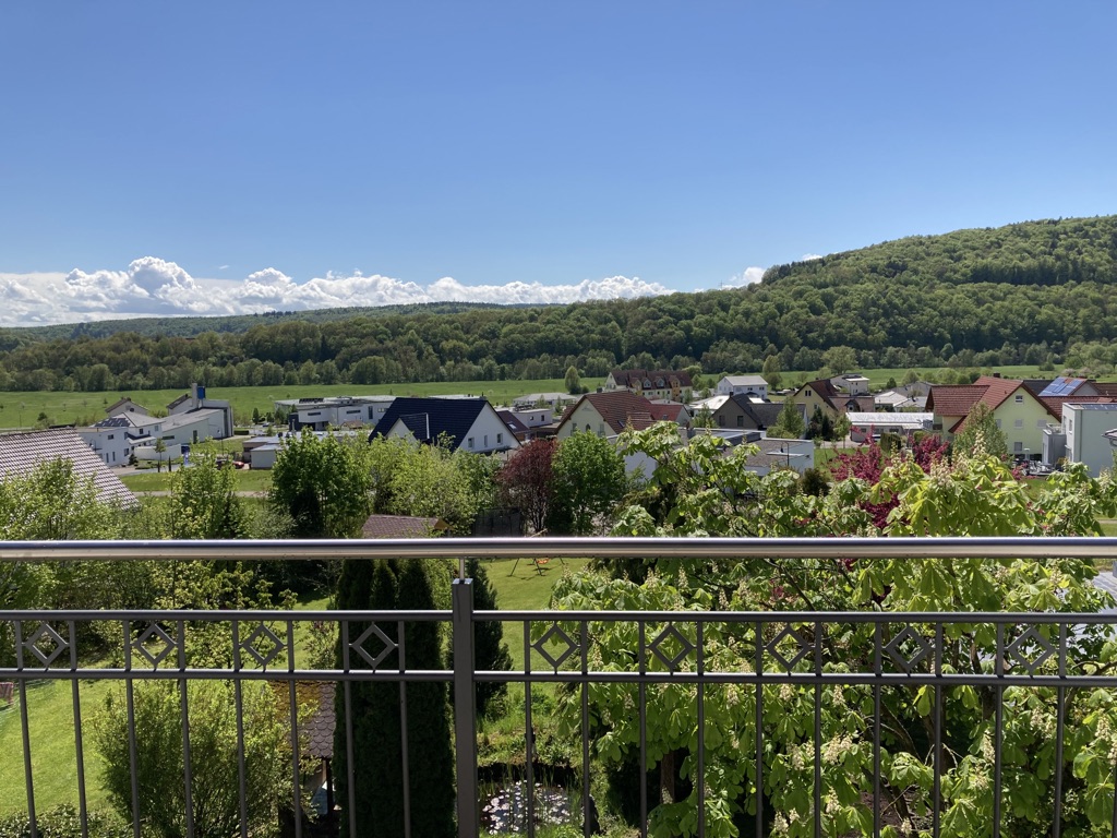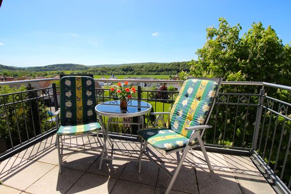 Komfortferienwohnung - 65qm, im 1 Stock mit überdachten Südbalkon und herrlichen Rundblick ins Saaletal und Vorrhön.