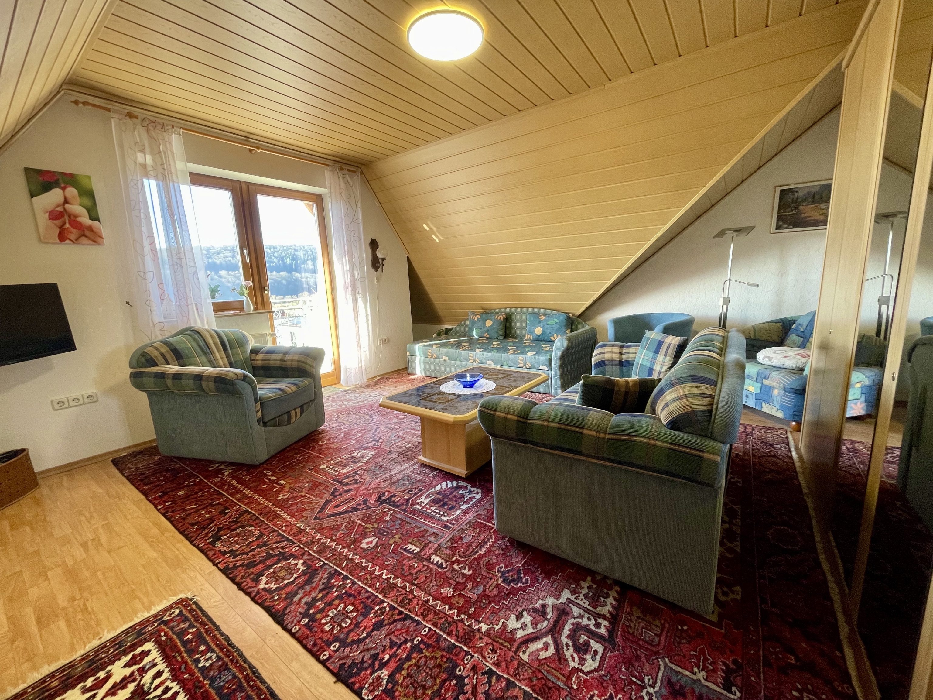 Wohnzimmer mit Couch + Sessel + Schafcouch, Kleiderschrank, Flachbild-TV, Radio, Südbalkon mit Traumaussicht,