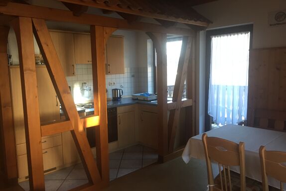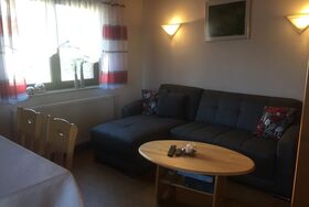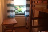 Unsere Ferienwohnung (50qm, rauchfrei) ist mit 3 Sternen ausgezeichnet, hat einen eigenen Eingang, Balkon und Terrasse mit Gartenmöbeln, sowie einen überdachten Grillplatz. Sie bietet in 2 Schlafräumen Platz für 4 Personen, wobei ein Zimmer mit Etagenbett ausgestattet ist. Die Küche ist durch Fachwerk zur Ess- und Polsterecke abgeteilt. Im Badezimmer finden Sie Dusche und WC. Sat-TV und WLAN sind vorhanden. Bettwäsche und Handtücher sowie Geschirrtücher werden gestellt.