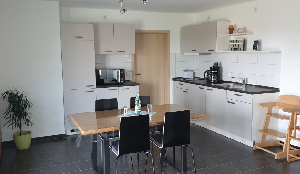 Die Ferienwohnung wurde XXXXXX ausgebaut und neu eingerichtet. Von der Wohnung aus genießen Sie den idyllischen Blick über das Streutal. Die modern ausgestattete Ferienwohnung ,,Rhönstyle“ (60m²) verfügt über ein geräumiges Doppelzimmer, einen gemütlichen, großen Wohn- und Essbereich mit einer Couch inklusive Schlaffunktion für einen Jugendlichen ab 14 Jahre, Erwachsenen oder 1 Kind (bis einschl. 13 Jahre). Eine großzügige Terrasse ca. 50m², ein großes modernes Bad mit Dusche, Badewanne und WC sowie die neu eingerichtete Küche bieten Ihnen eine komfortable Möglichkeit für ihren Urlaub.