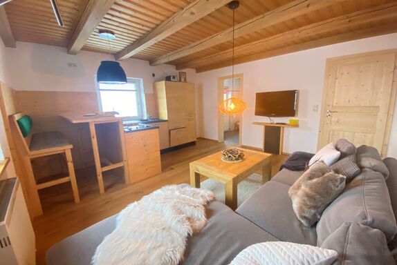 Wohn-Essbereich : Flachbild - Digital-TV, HiFi - Anlage mit Bluetooth, WLAN-Empfang, USB-Steckdosen, gemütliche Sitzecke, Essecke mit Sitzbank
