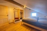 Schlafzimmer : Doppelbett mit neuer erstklassiger Komfortbettausstattung und Matratzen ( 2 x 90 x 200cm), offen gestalteter großer Kleiderschrank, 2 USB-Ladestationen, Zimmertresor