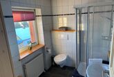 Badezimmer : Dusche, WC, Waschbecken, Spiegel und Schminkspiegel, Fön .. und Morgensonne