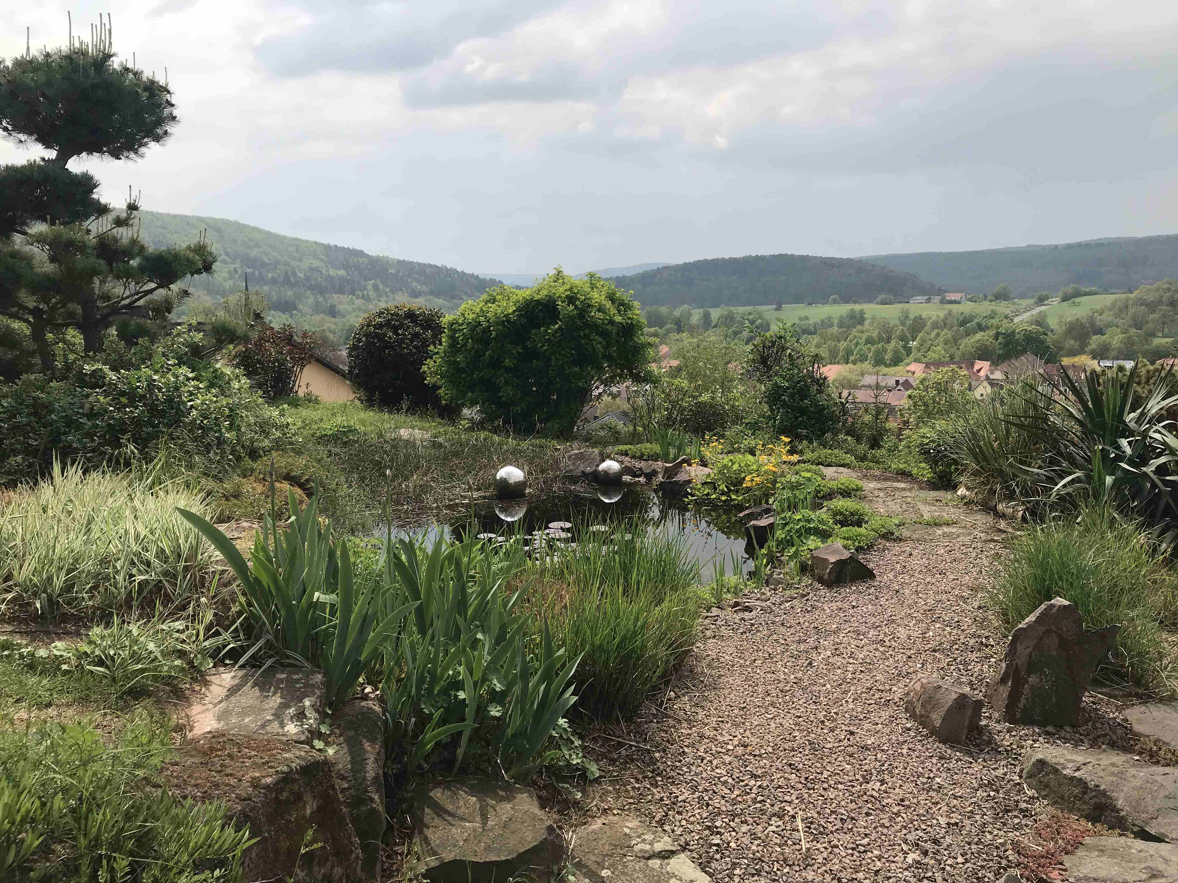 Wenn Sie auf die Terrasse Ihres Appartements treten, eröffnet sich Ihnen eine grandiose Aussicht über das Saaletal, von den Hügeln der Vorrhön im Norden bis nach Bad Kissingen im Süden.