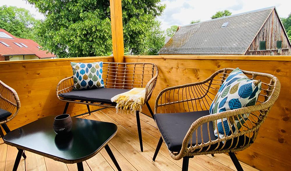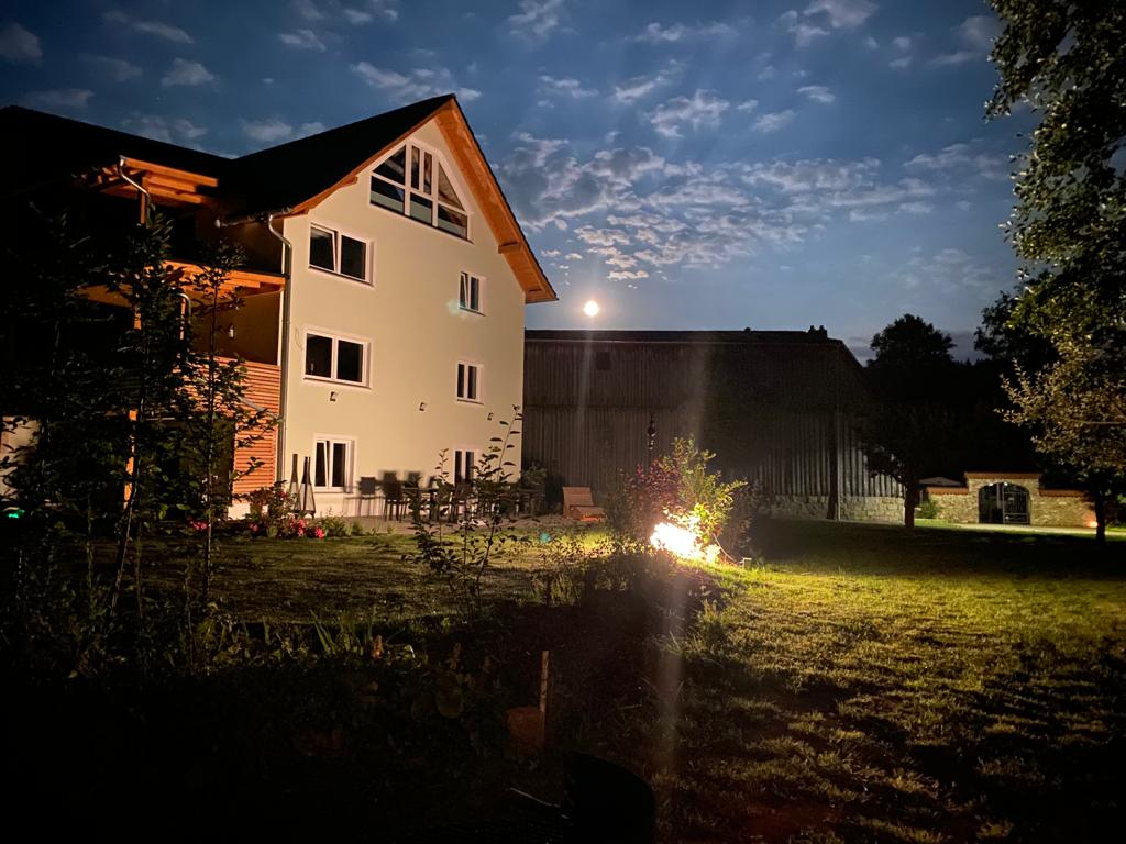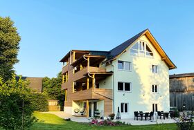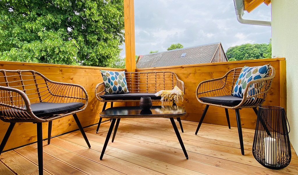 Unsere 5-Sterne Wohnungen sind modern eingerichtet und bieten euch einen hohen Komfort, eine hochwertige, voll ausgestattete Küche sowie ein modernes geräumiges Bad. Alle Wohnungen verfügen über einen eigenen Balkon mit Sitzgruppe, Fußbodenheizung, Waschmaschine, Staubsauger, Bügelbrett/Bügeleisen, Smart TV, Sound-Box, W-LAN und Safe. Die Fasssauna mit Ruheraum, die große Sonnenterrasse, sowie der Frühstücksraum sind für alle Gäste gemeinsam nutzbar. Unsere kleinen Gäste finden altersgerechte Spiele in der Ferienwohnung sowie Fahrzeuge und Spielgeräte in der Spielscheune im Garten.