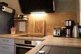 Großer Wohn-Essbereich sowie eine hochwertige, voll ausgestattete Küche mit Kühl-/Gefrierschrank, Backofen, Mikrowelle, Spülmaschine und modernen Markengeräten (Filterkaffeemaschine, SodaStream inkl. Gaskartusche, Teekanne, Toaster, Wasserkocher)