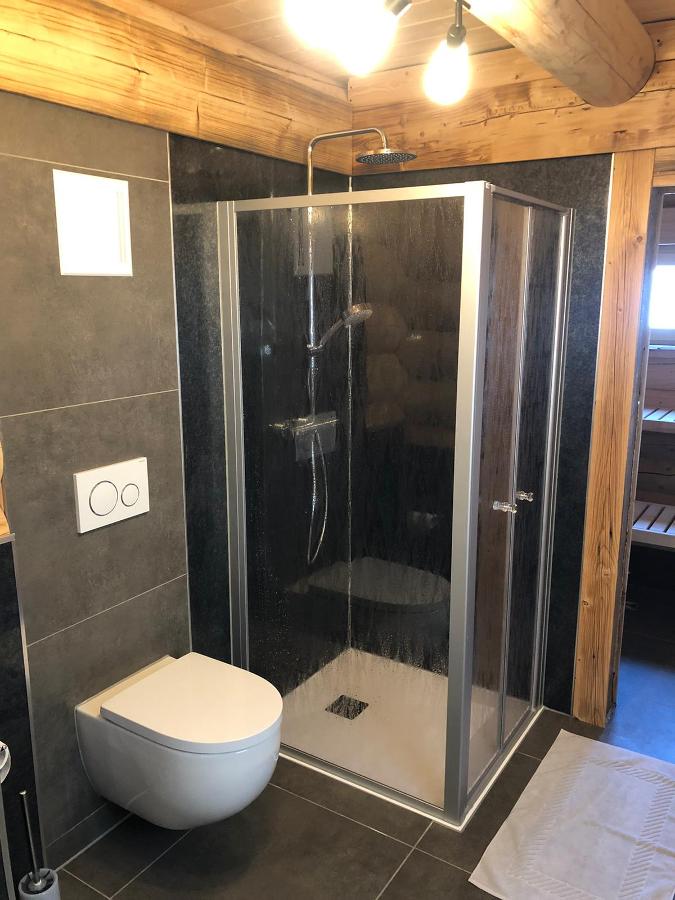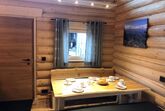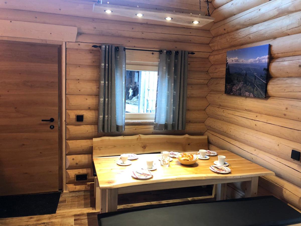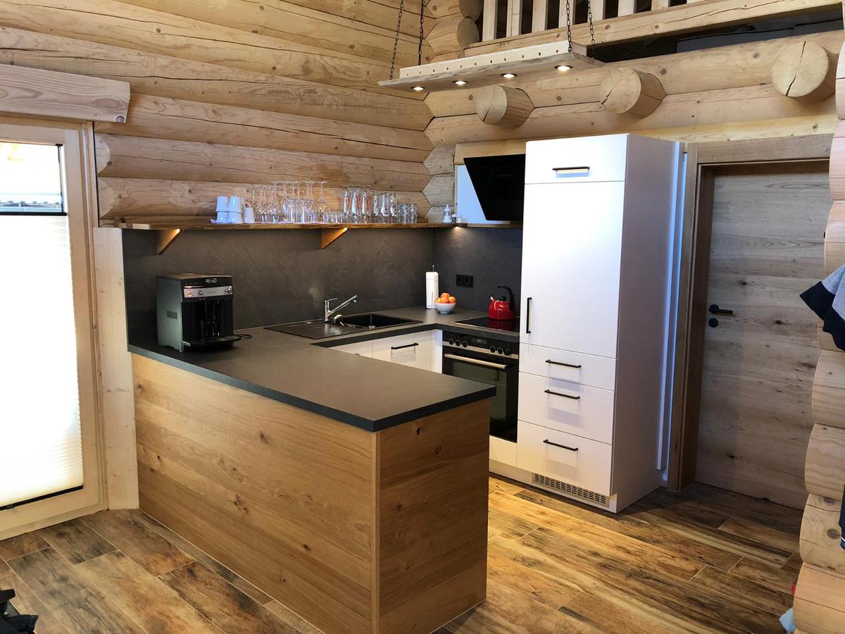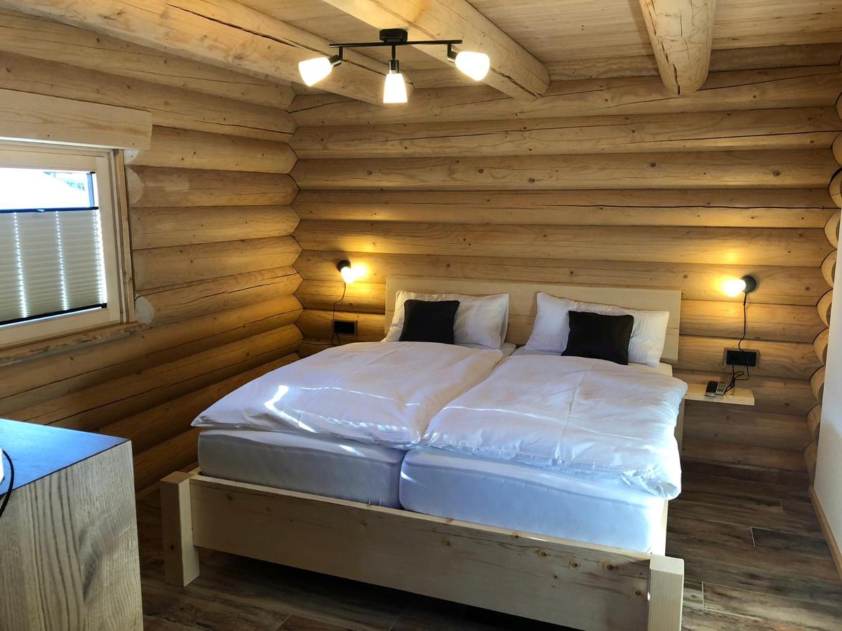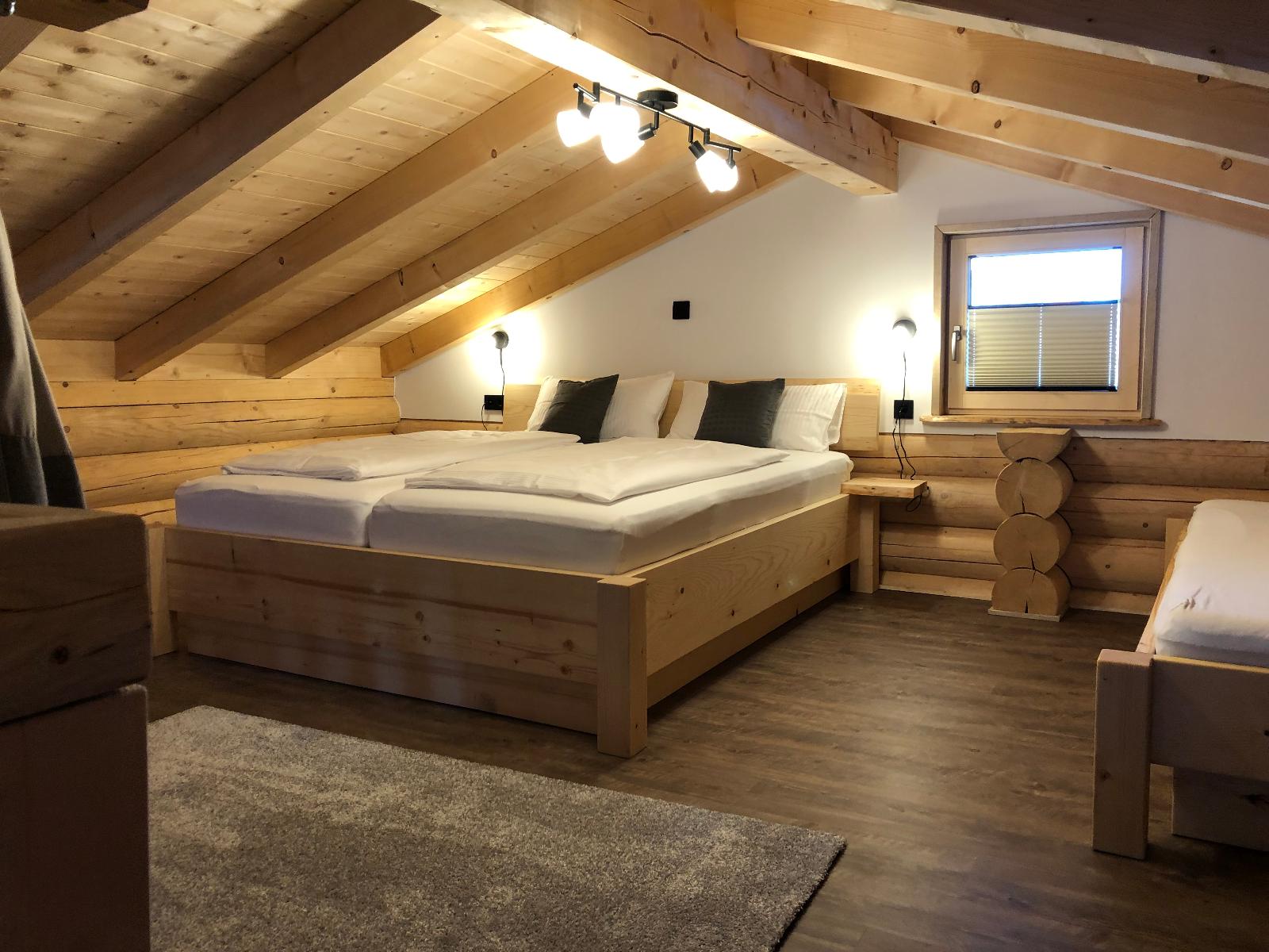 Das Rundholzchalet wurde komplett aus eigenem Holz und mit viel Liebe gefertigt. Es ist in schlichtem Design mit handgefertigten, naturbelassenen Vollholzmöbeln ausgestattet.