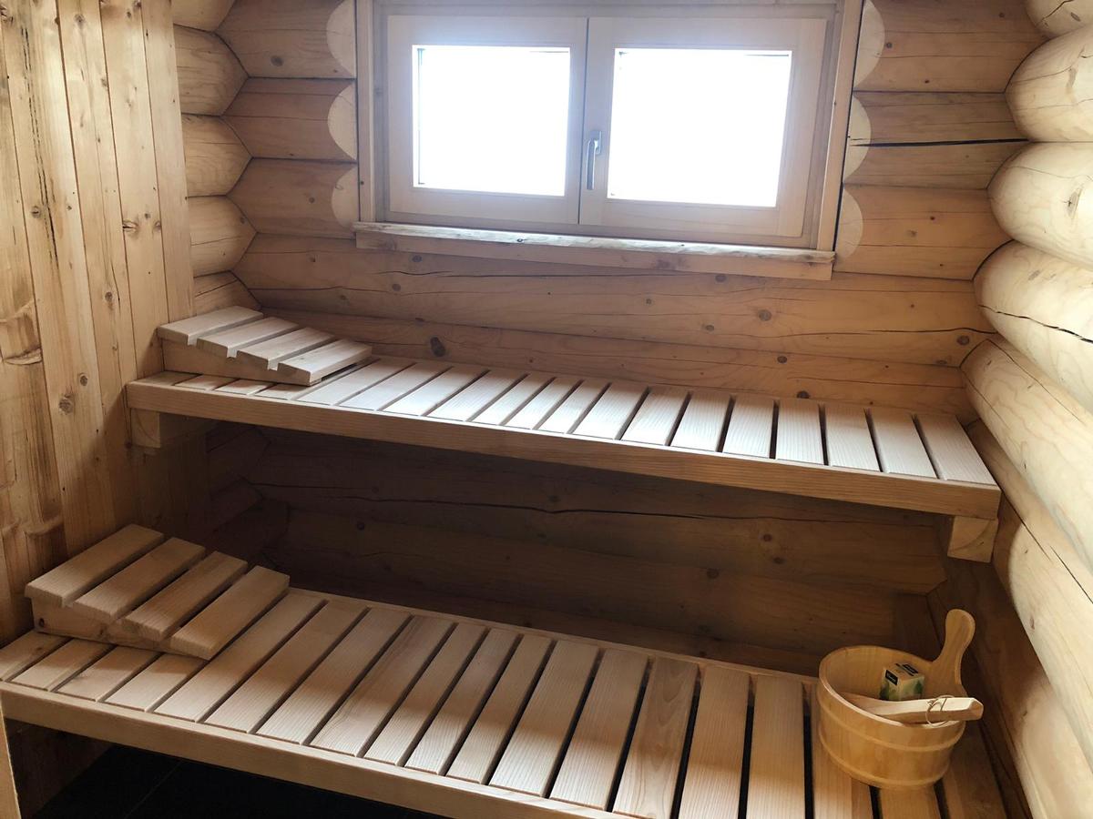 Wellness für Körper und Seele bietet Ihnen die eigene Sauna, die Sie jederzeit aufheizen können.