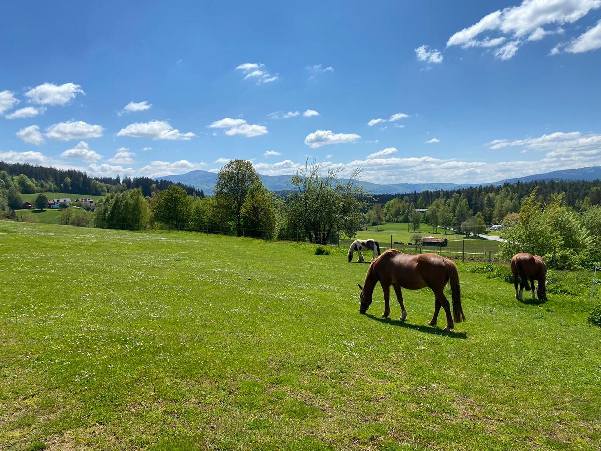 Das Chalet Zur Landfrau auf dem Biohof Weiderer befindet sich in Lindberg, am Fuße von Arber und Falkenstein, den schönsten Bergen im Bayerischen Wald.