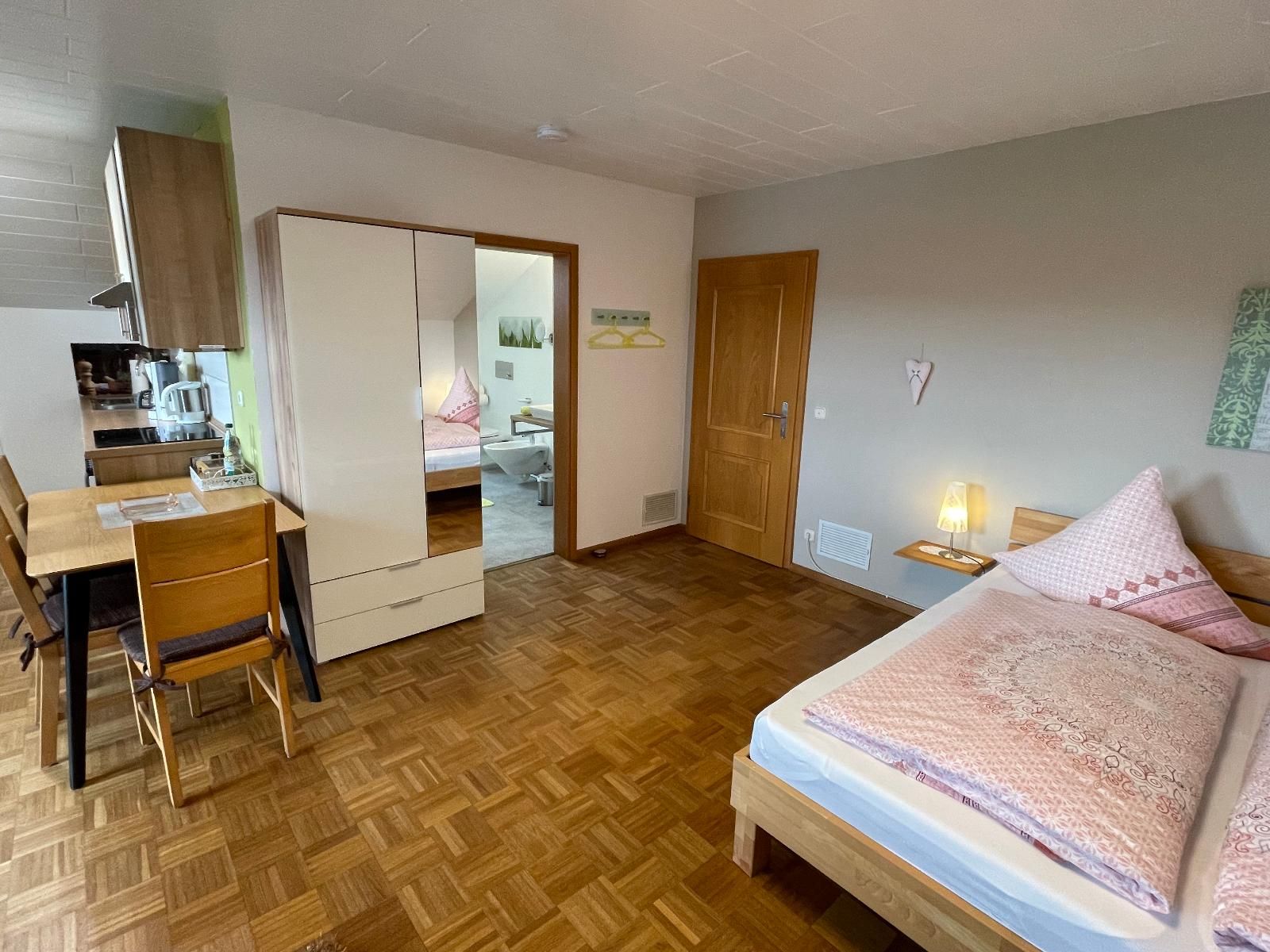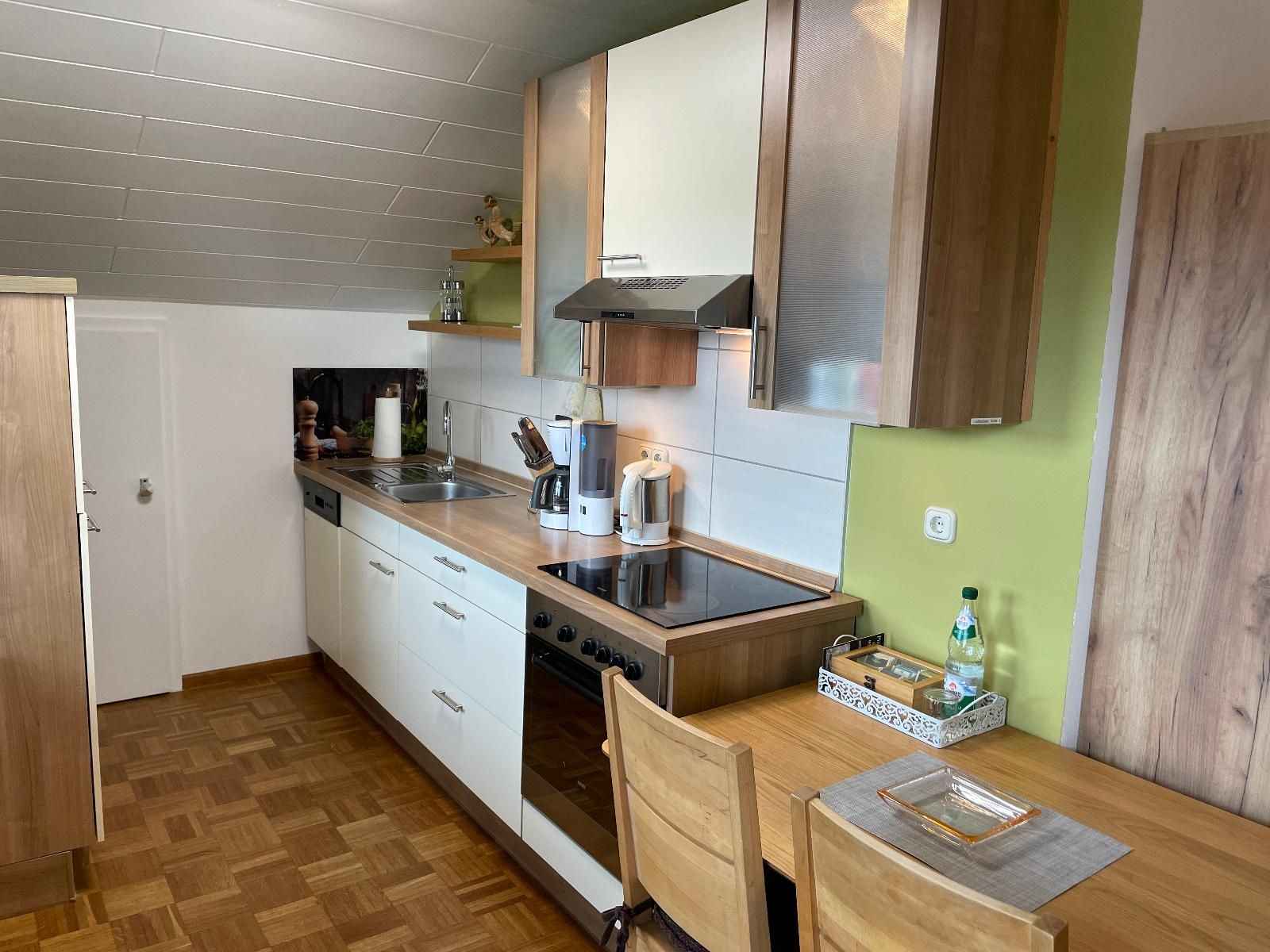 Apartment 37m² für 2-3  Pers., Doppelbett, Küchenzeile mit Herd, Ceranfeld, Kühl-Gefrierschrank, Geschirr, Töpfen, Besteck, Geschirrtücher