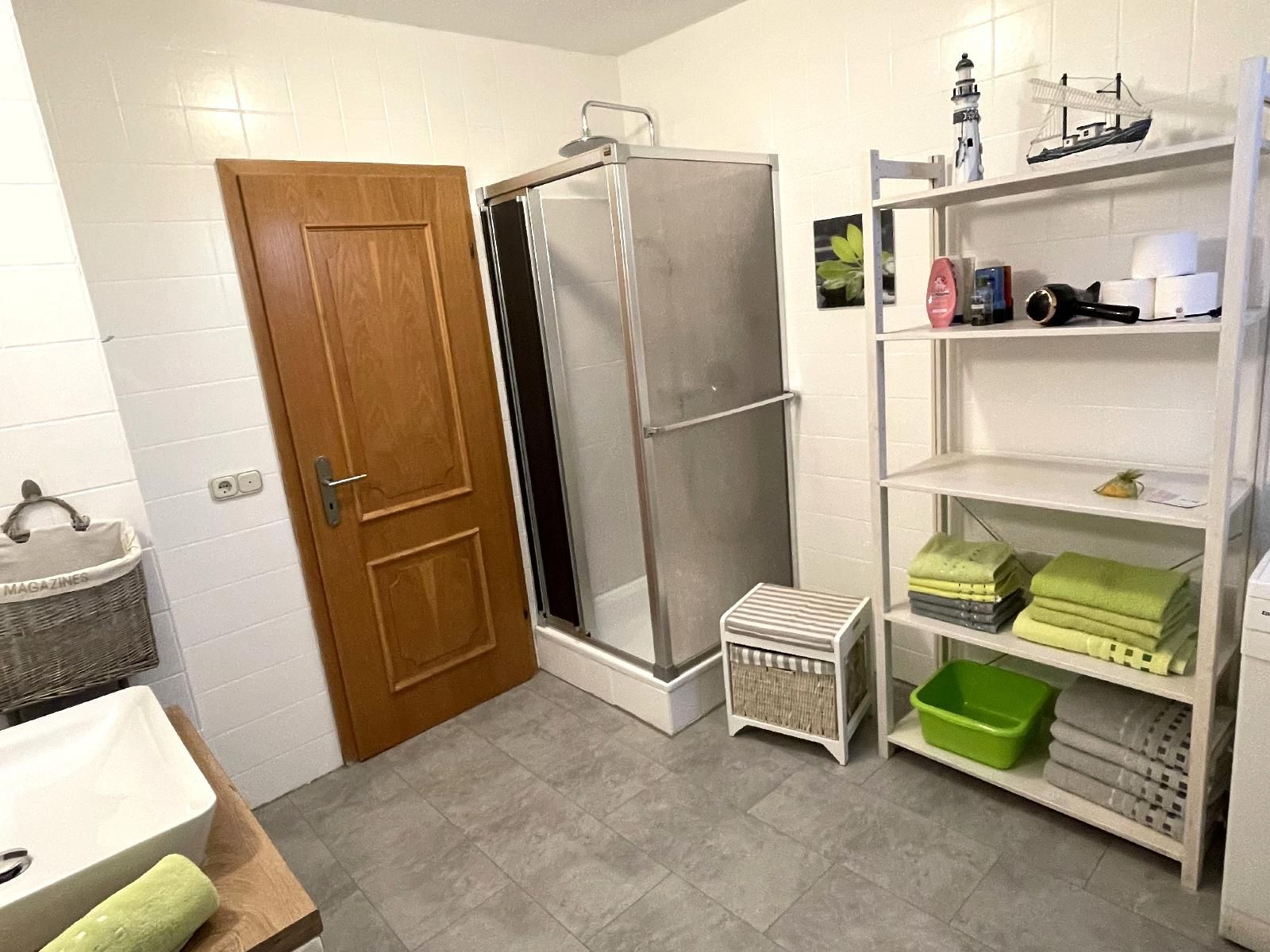 Badezimmer mit Dusche, WC, Bidet, Waschmaschine