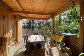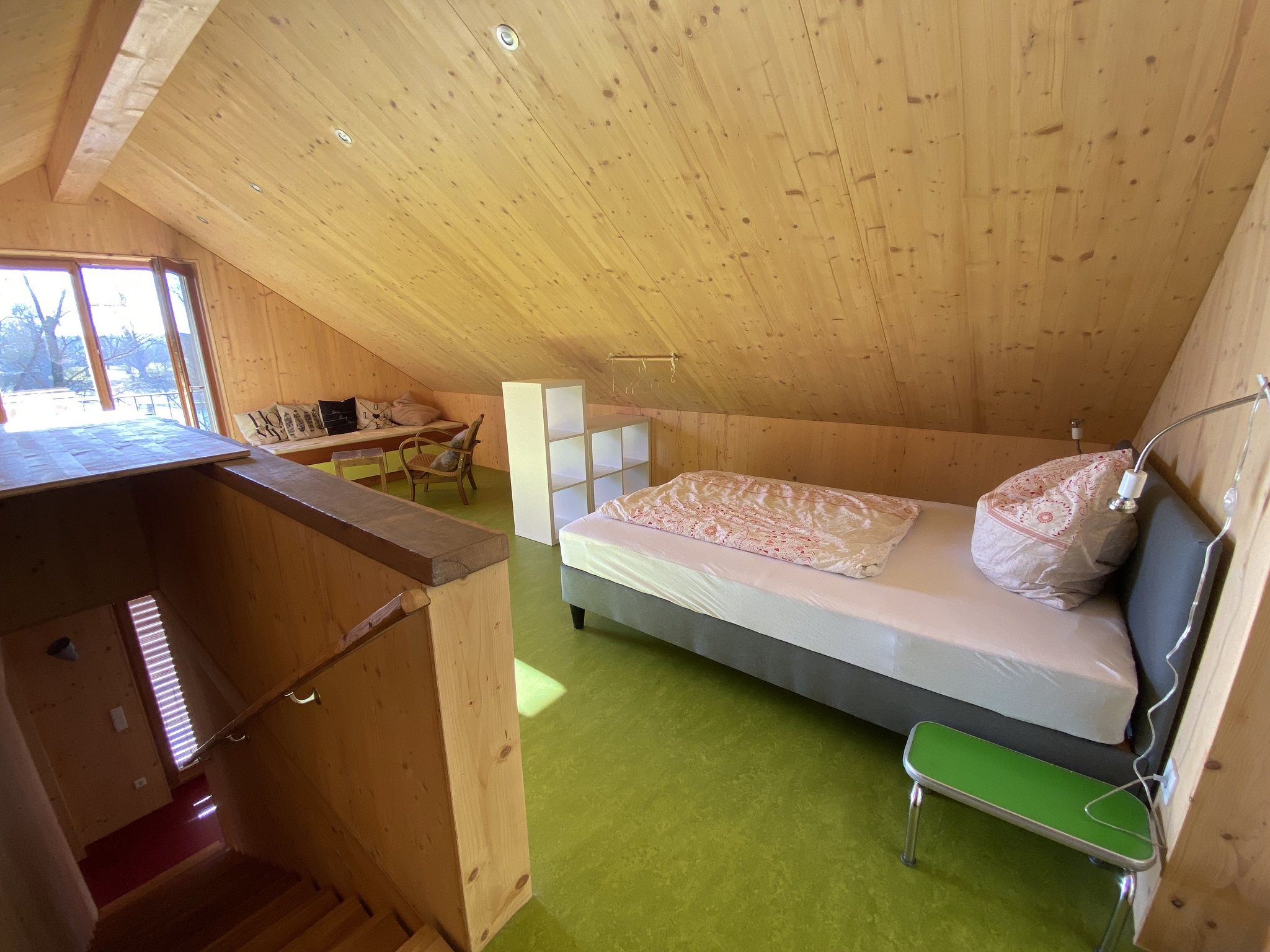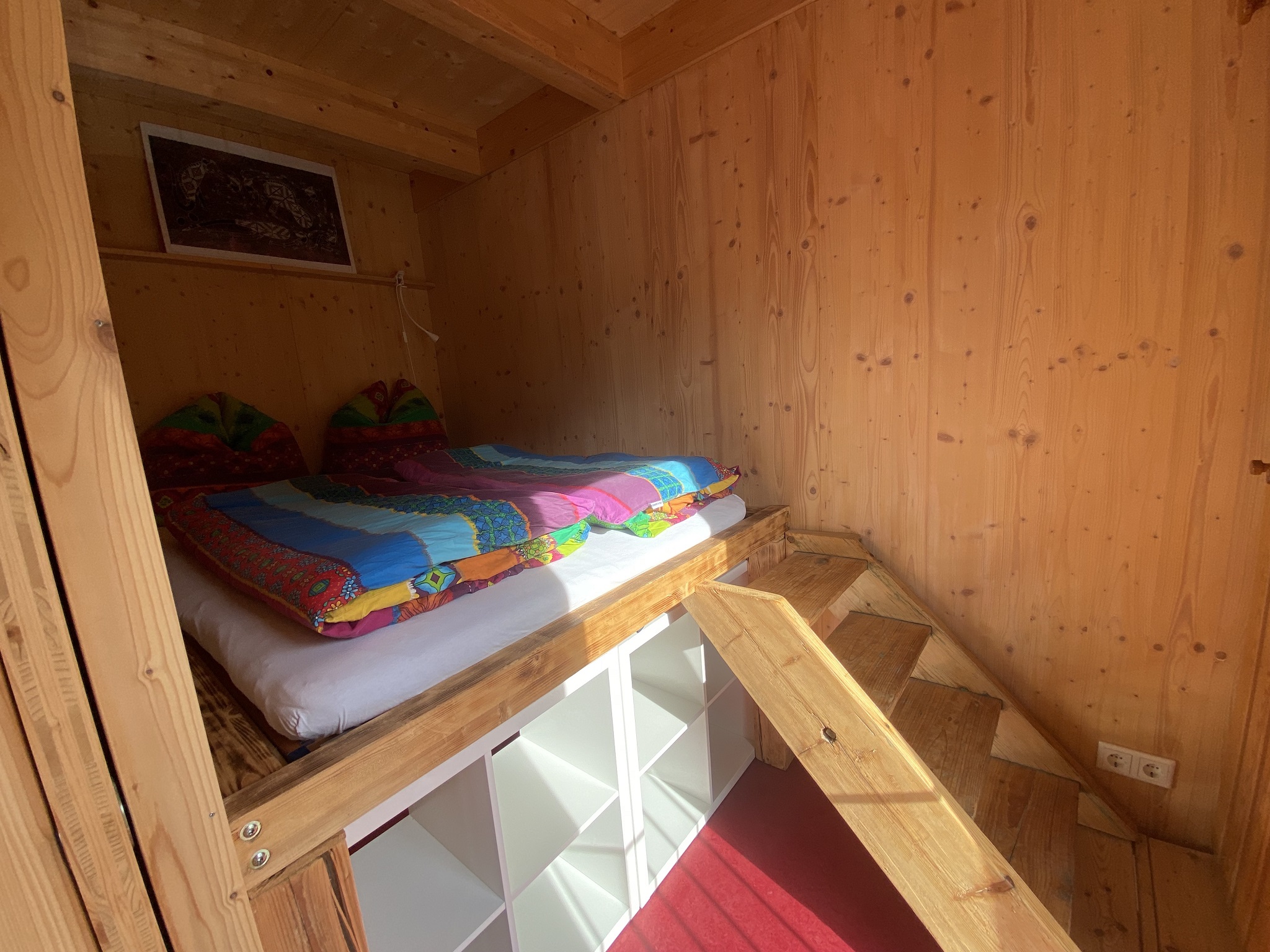 Bitte kleine Kinder wegen der Holztreppen und dem Hochbett innen und der teils unebenen, überwiegend naturbelassenen Außenanlagen verstärkt beaufsichtigen.