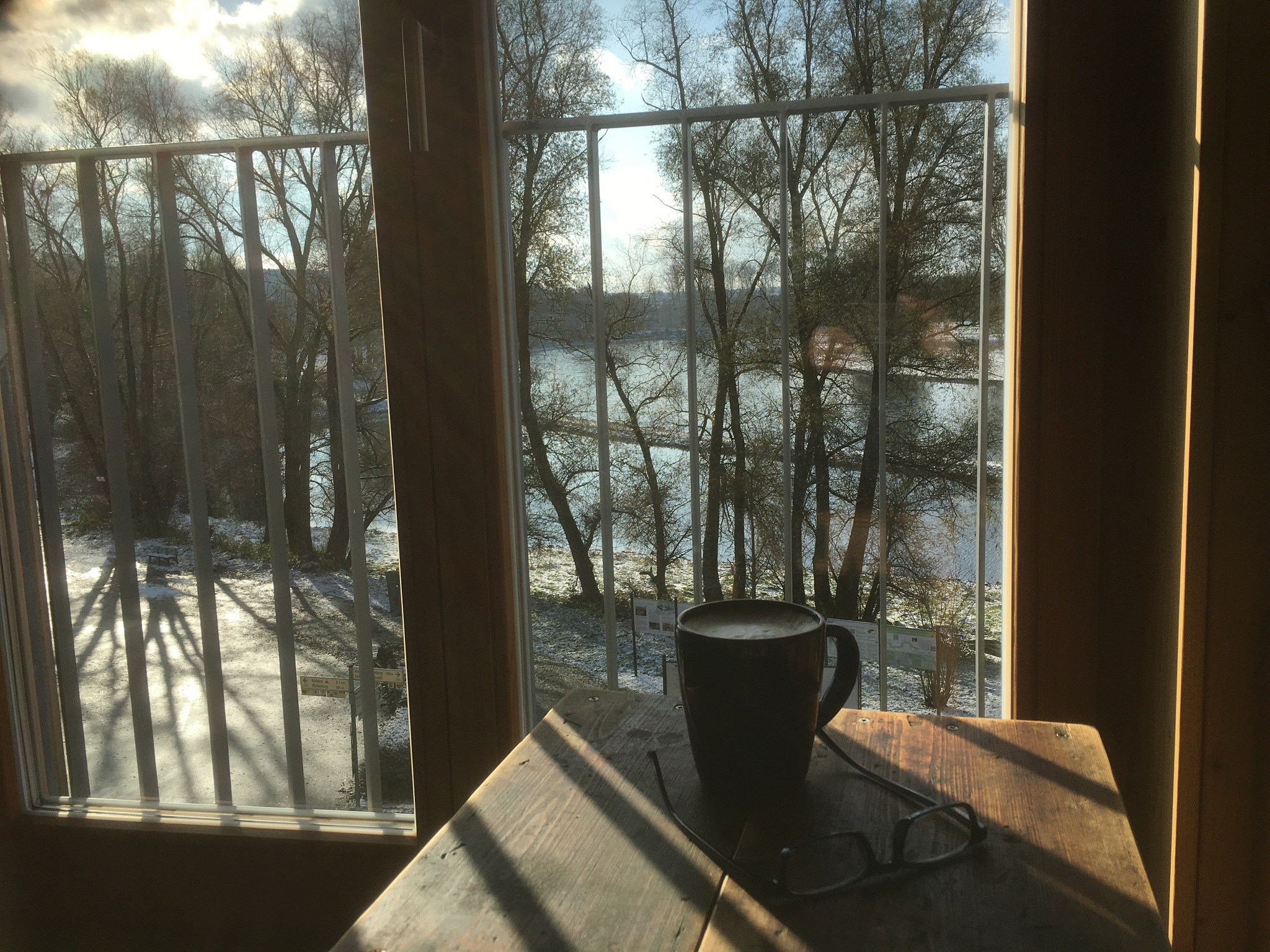 Im Erdgeschoss befinden sich die Küche, der Essbereich und ein WC, im Obergeschoss der Wohnbereich, ein kleines Bad mit Dusche und ein kleines Schlafzimmer mit einem halbhohen Doppelbett. Das offene Dachgeschoss bietet Platz für drei Betten (zwei Einzelbetten und ein Bett mit 1,40m Breite) mit Ablagemöglichkeiten. Aus allen drei Etagen bieten sich wundervolle Ausblicke auf die Donau und ins Grüne.