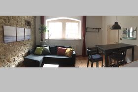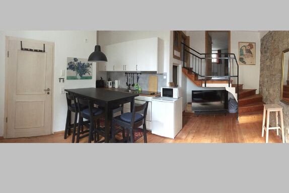 ALLGEMEIN: Erdgeschosswohnung mit Ess-/Wohnzimmer, Schlafzimmer, Schlafkoje, Bad und separatem WC. Stilvoll und hochwertig eingerichtet. Offenes Fachwerk und Bruchsteinwand. Freies WLAN. Parkplatz. Gartensitzplatz mit Grill. Für max. 4 Personen + Kleinkind. 2 weitere Personen auf Anfrage.