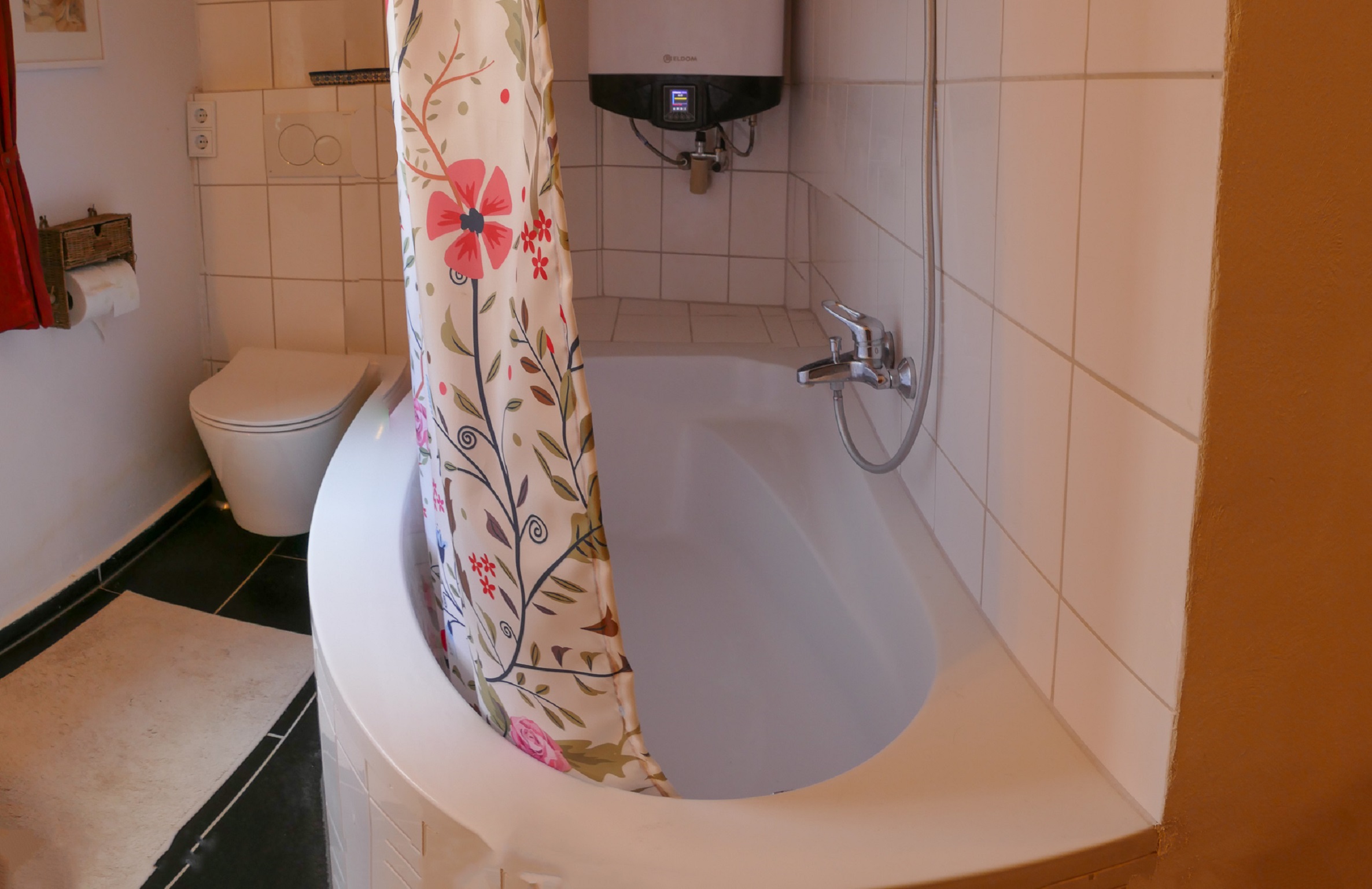 BAD: Badewanne, 120 l Boiler, WC, Handtuchtrockner, Föhn + Extras, Bade- und Handtücher.