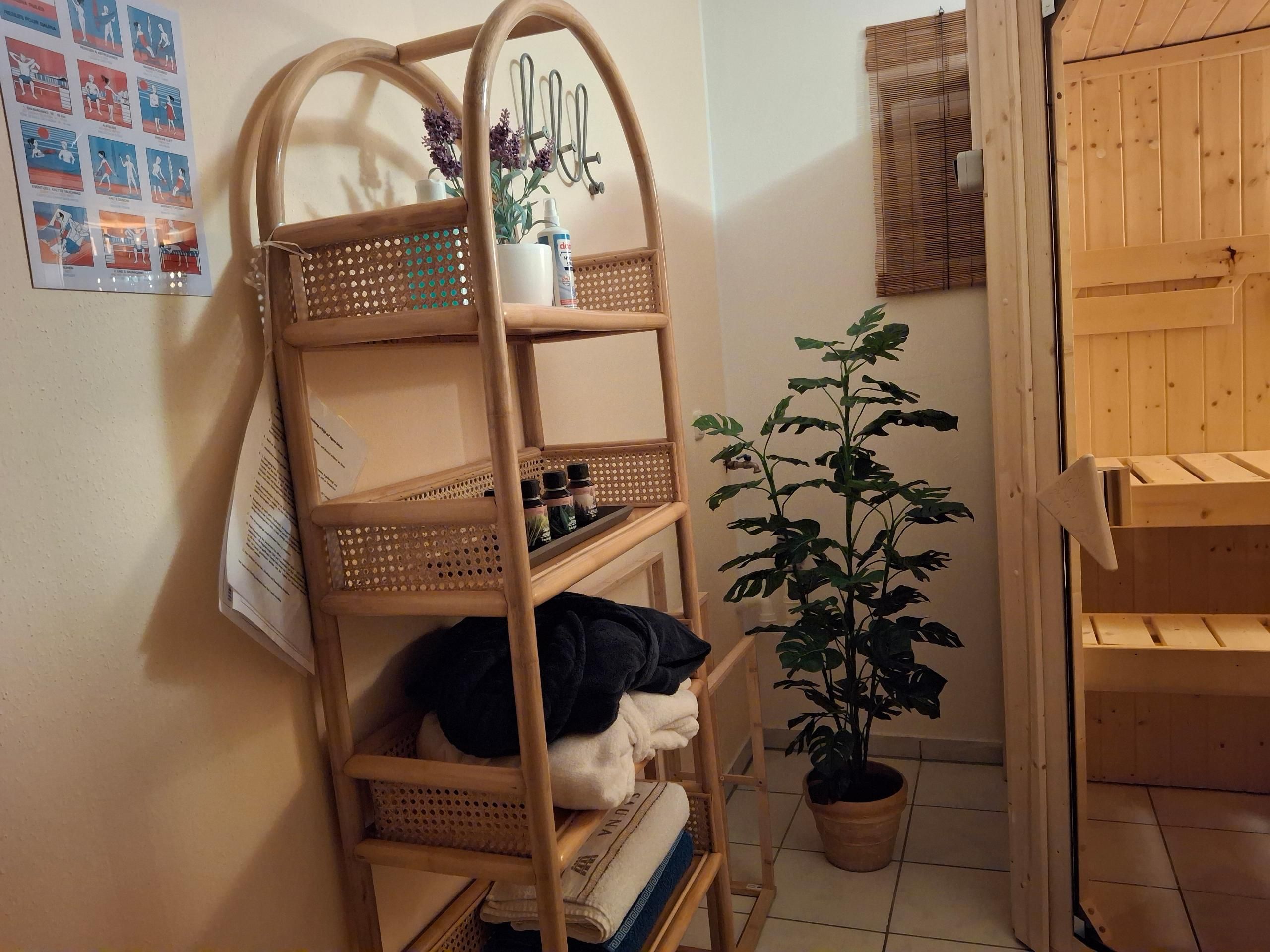 Zum Entspannen lädt die zur alleinigen Nutzung vorhandene Sauna ein. Die Benutzung ist gegen eine Pauschale möglich. In dieser Pauschale sind folgende Leistungen enthalten: beliebig viele Saunagänge, Saunahandtücher und evtl. Wechsel bei Bedarf, Bademäntel und Saunaaufgussöle.