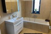 1 Badezimmer mit Waschbecken, Badewanne, Dusche und WC